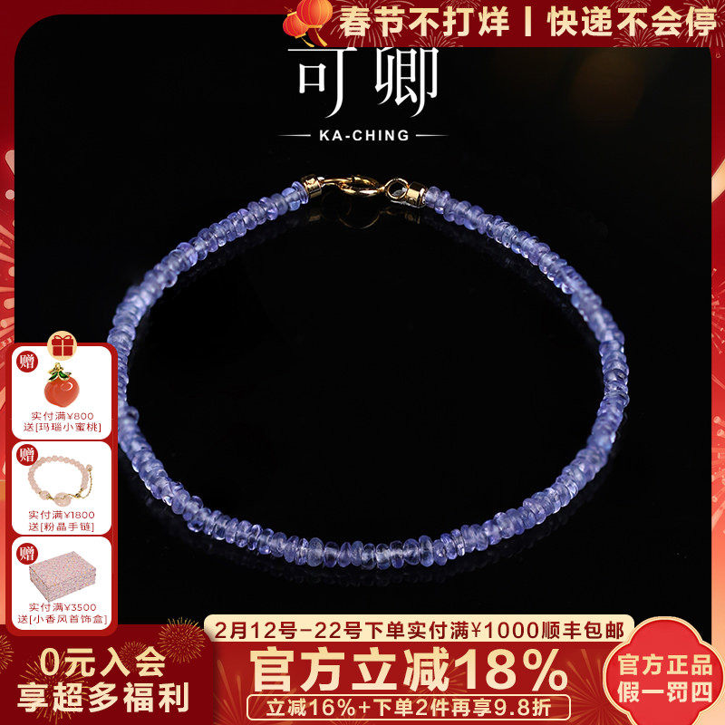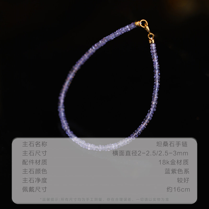 📚 可卿珠宝 丁香 坦桑石手链女18k金串珠素面彩宝手串手饰正品礼物
