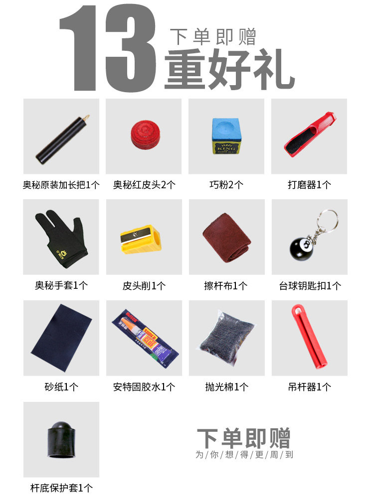 📚 OMIN奥秘雷泽台球杆斯诺克小头 中式黑八黑8球杆16桌球杆一体通杆