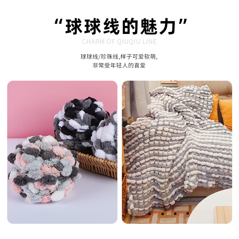 📚 大球球线手工编织盖毯diy钩织手织毯子毛毛球粗毛线坐垫汽车垫子
