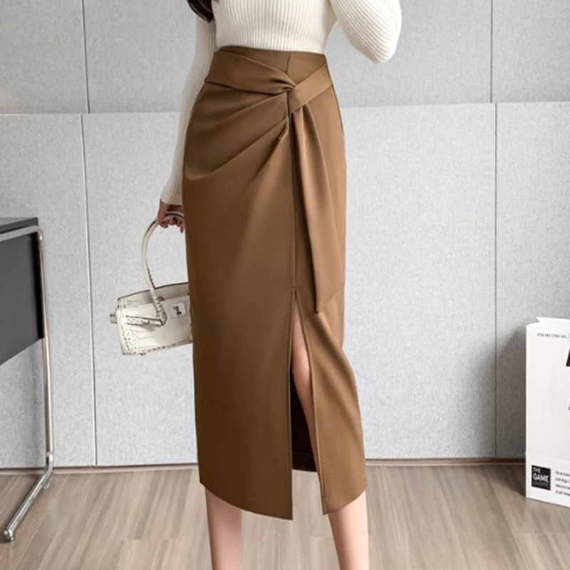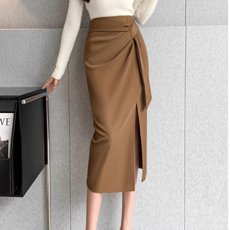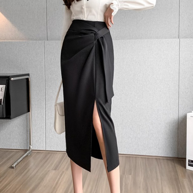 📚 大码胖MM西装半身裙女装夏季中长款设计感绑带高腰开叉一步包臀裙