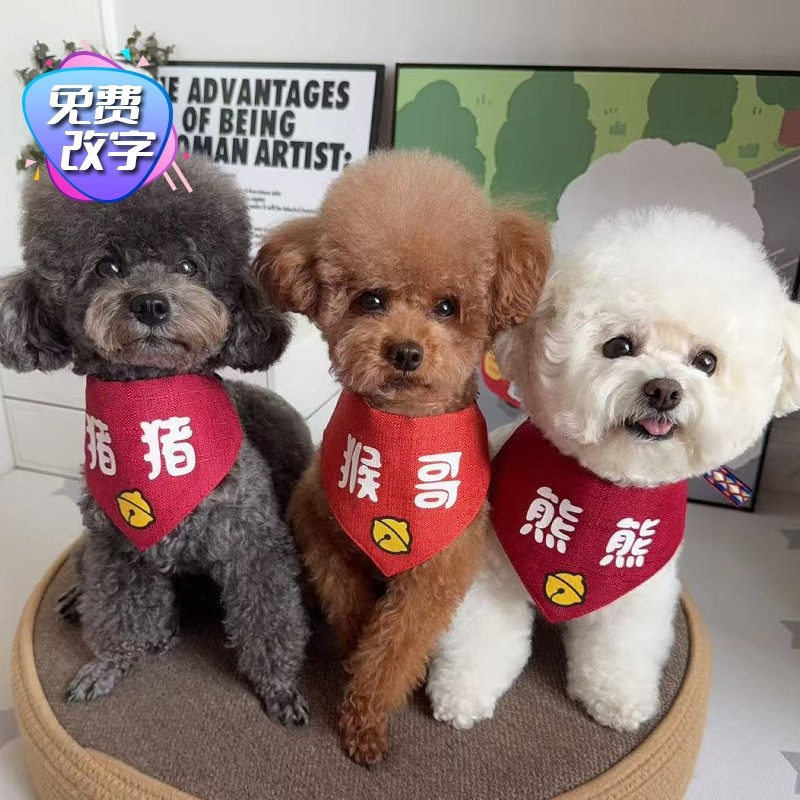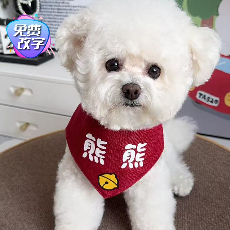 📚 福利 狗名字手工萨摩耶防水口水巾 棉麻大型犬松狮狗狗宠物狗围嘴