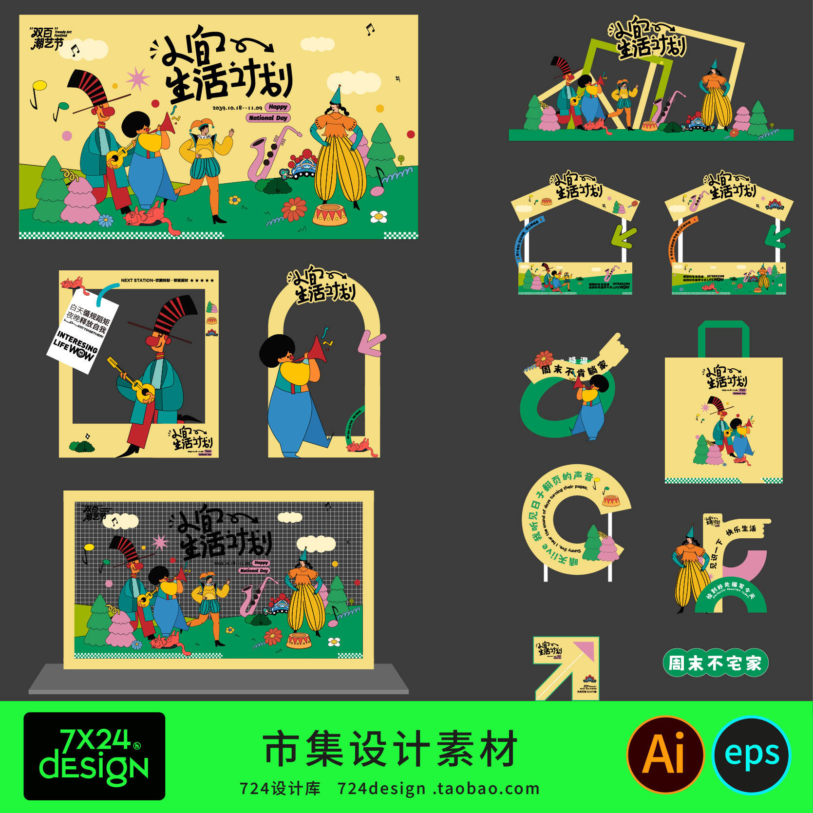 📚 创意卡通趣味生活节市集摊位设计美陈物料拍照打卡点背景板素材