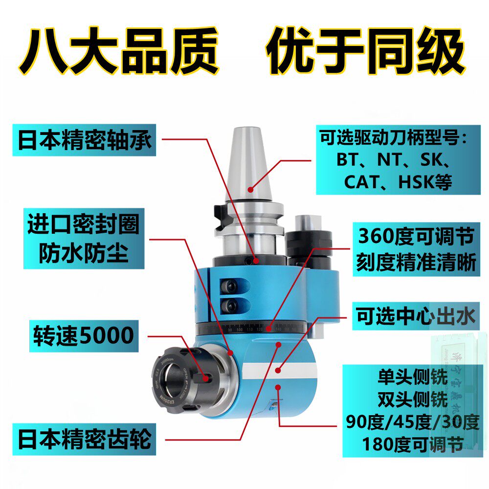 📚 HSK63A五轴加工中心90度侧铣头数控角度头深腔避空横向异形ER铣头