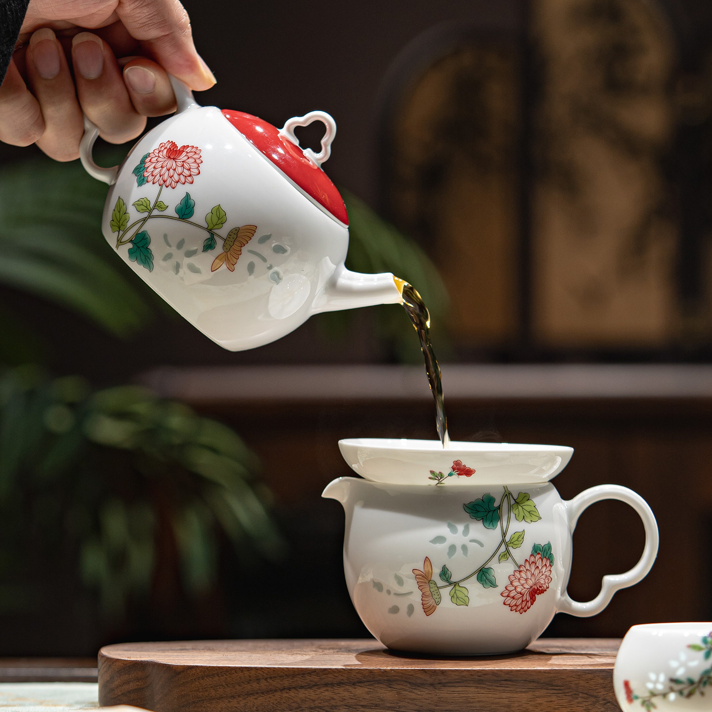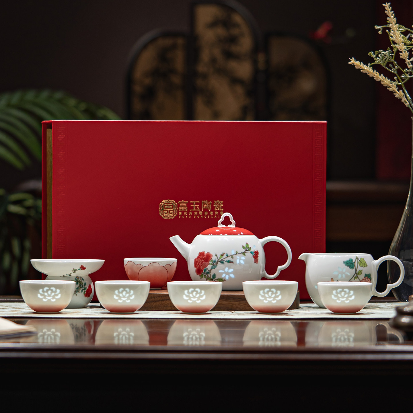 📚 富玉陶瓷景德镇功夫茶具套装家用结婚送人轻奢高档泡杯红色礼盒装