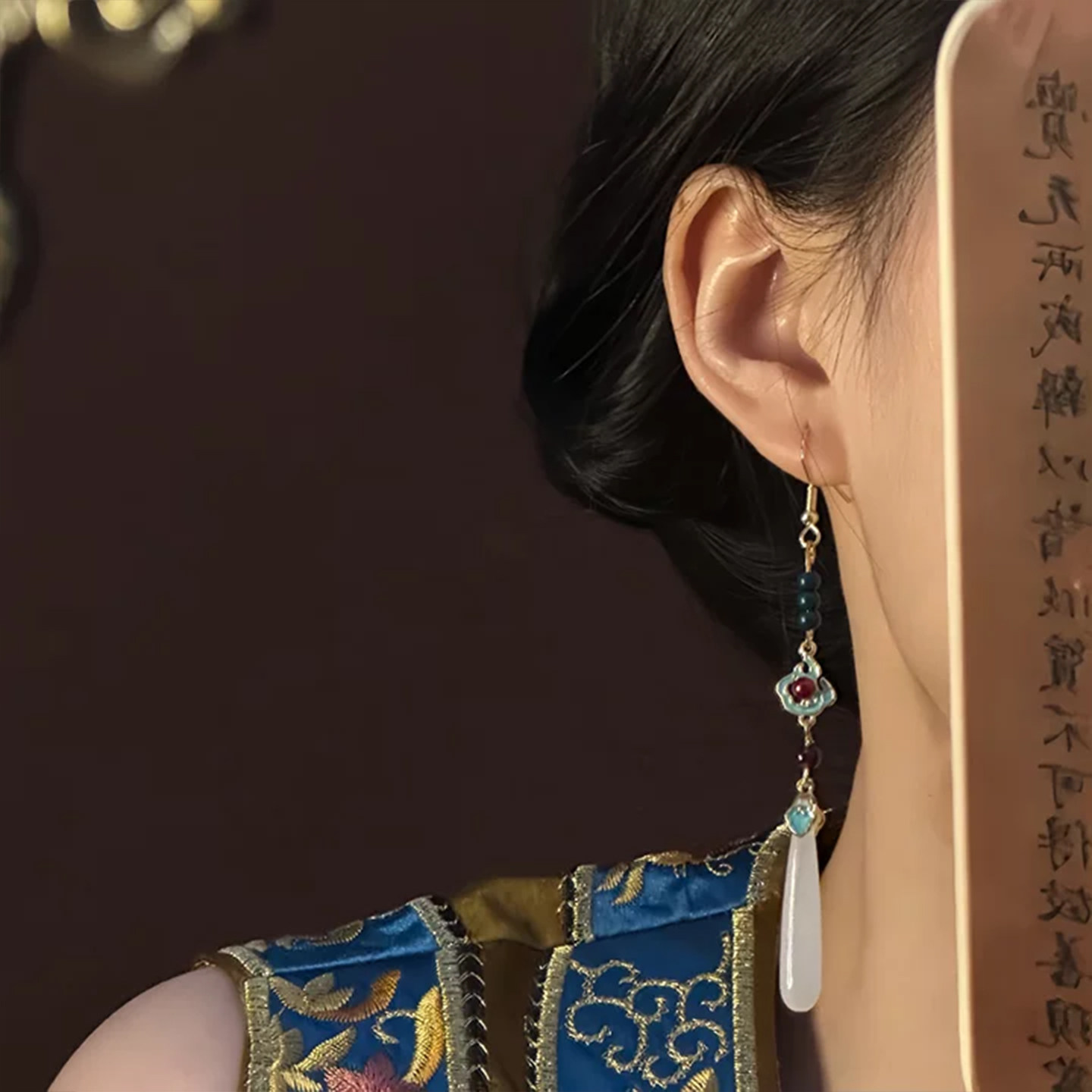 📚 山沐手作「烟雨江南」新中式长款水滴吊坠耳环女旗袍耳坠古风耳饰