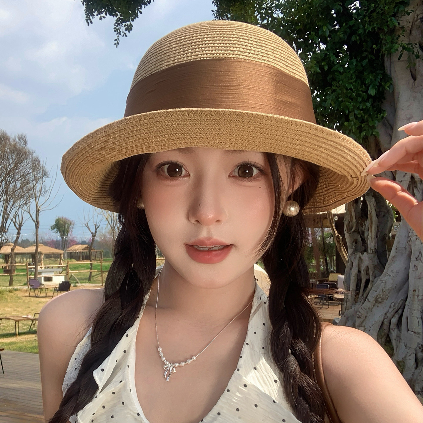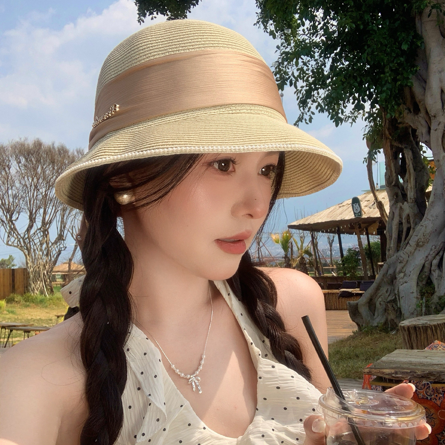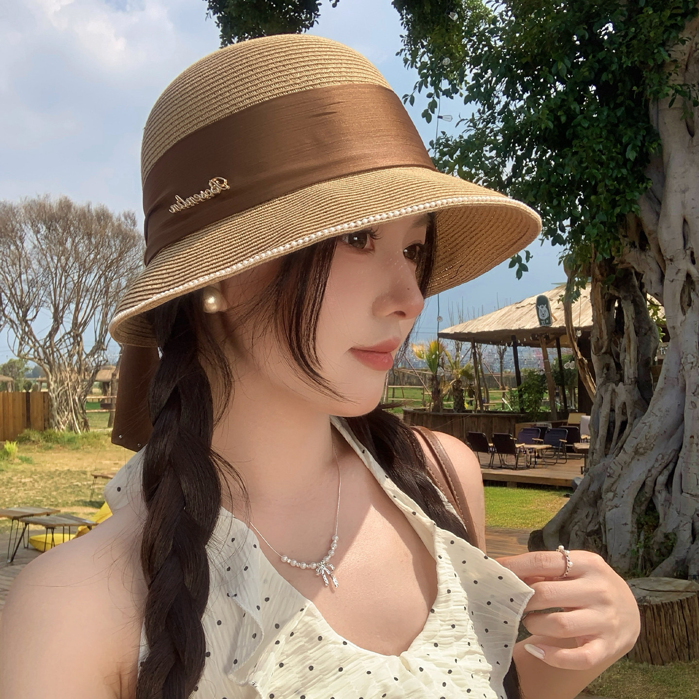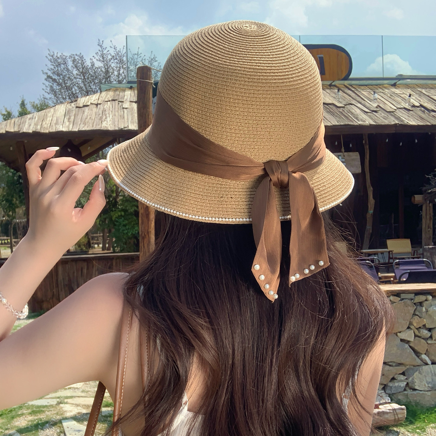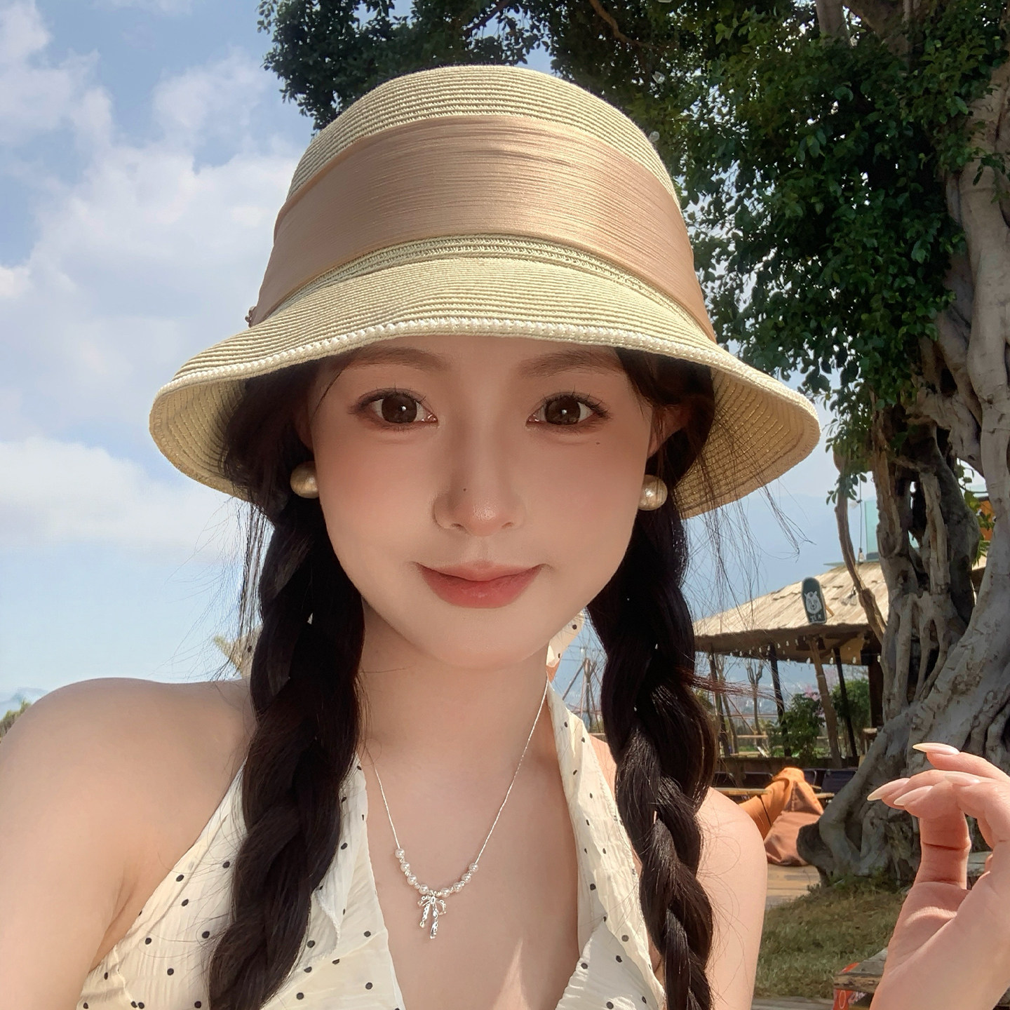 📚 法式宽檐渔夫帽女夏季防晒遮阳大帽檐草帽沙滩度假风蝴蝶结太阳帽