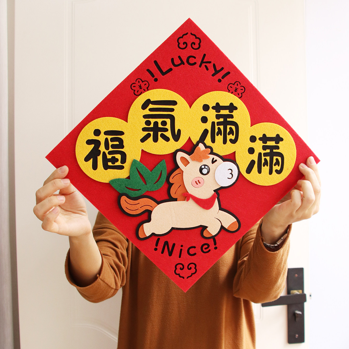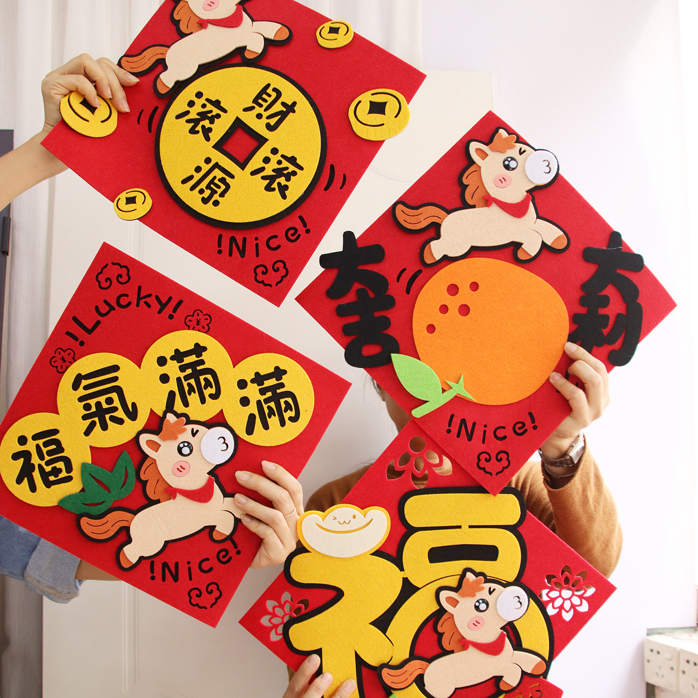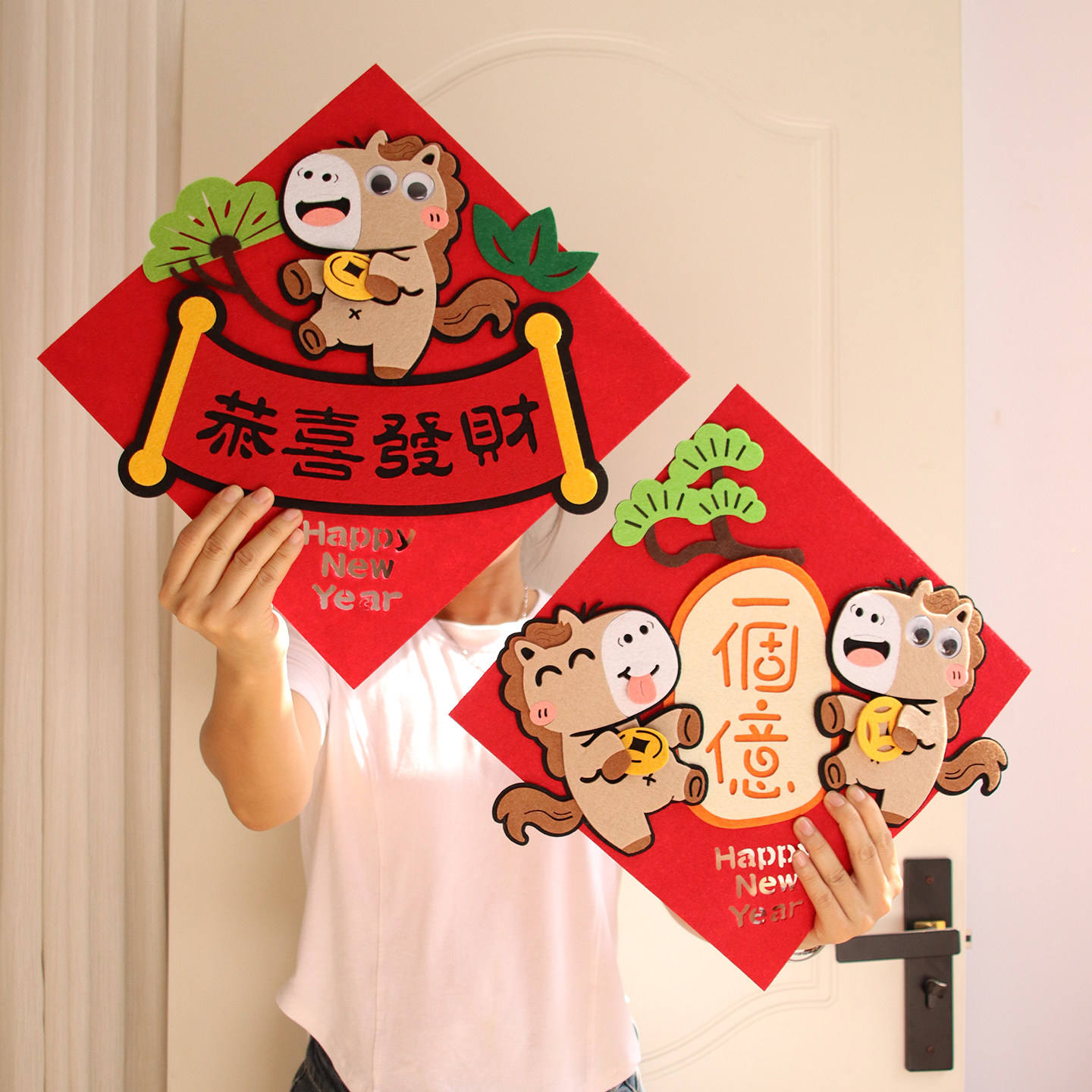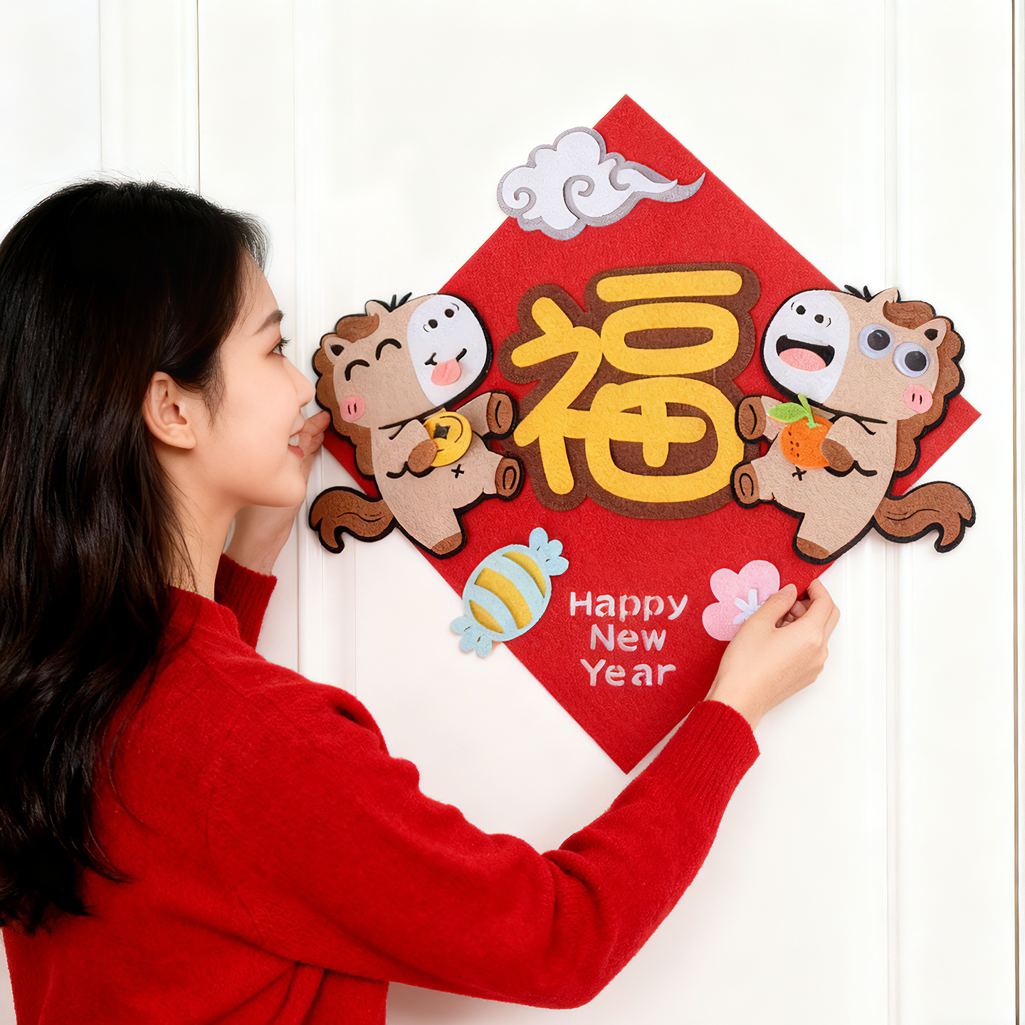 📚 2026马年磁吸春联无纺布新年小对联春节卡通创意立体福字门贴装饰