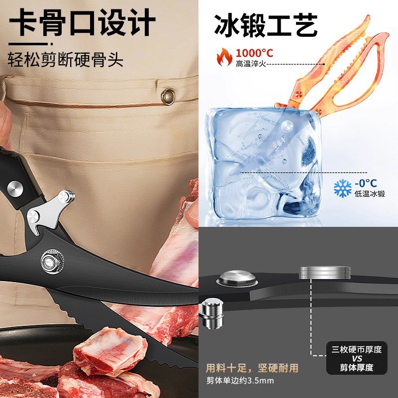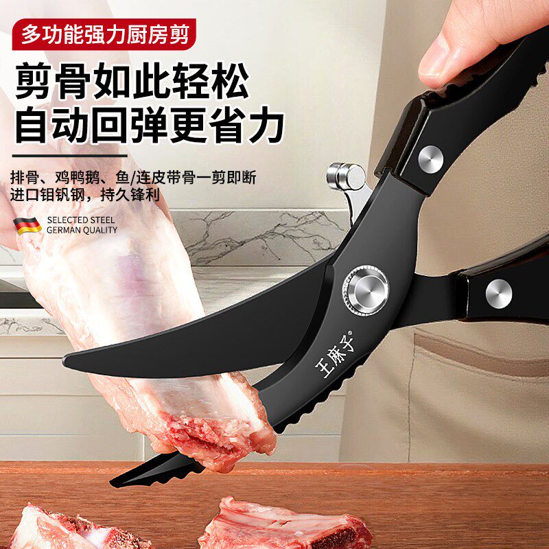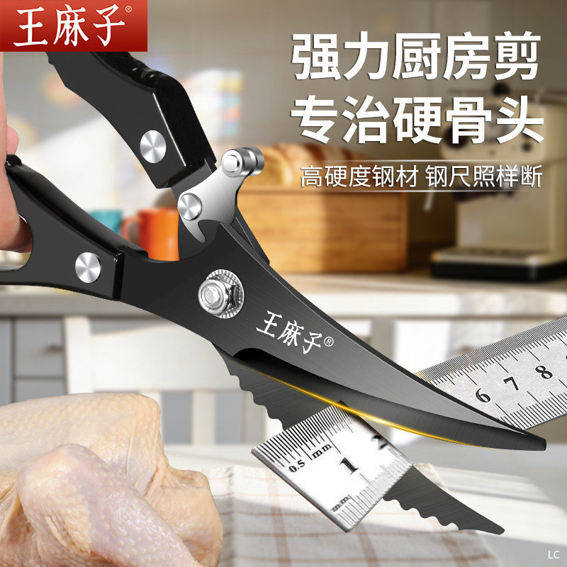 📚 王麻子剪刀厨房专用强力鸡骨剪特大号锋利多功能商用杀鱼食物剪子