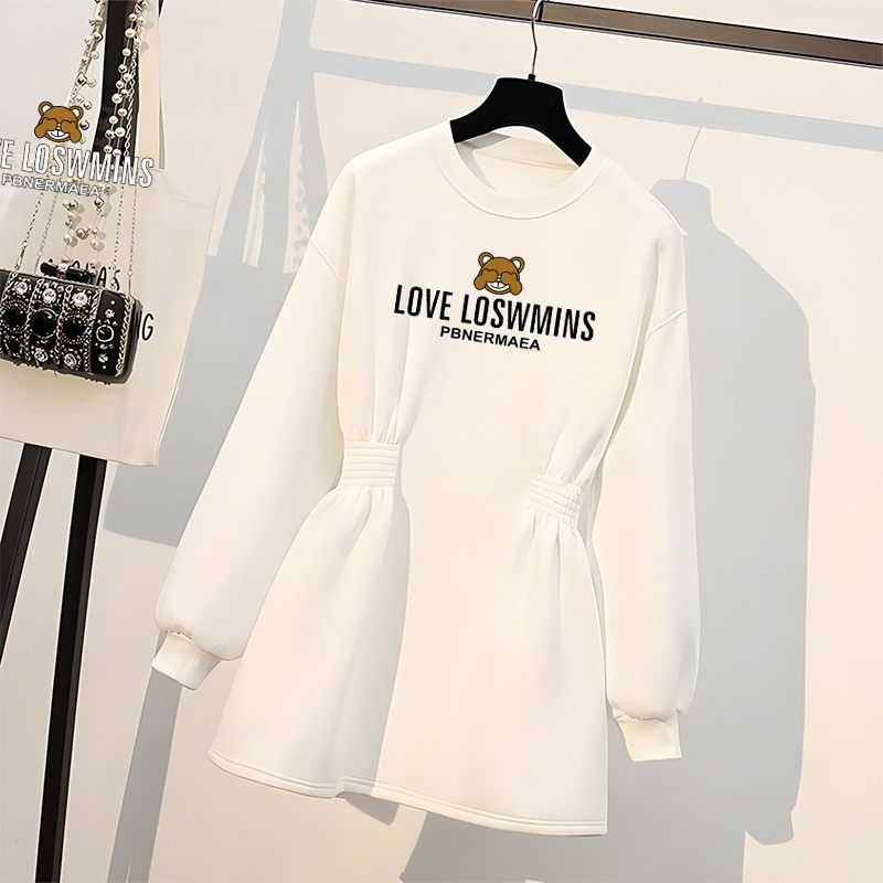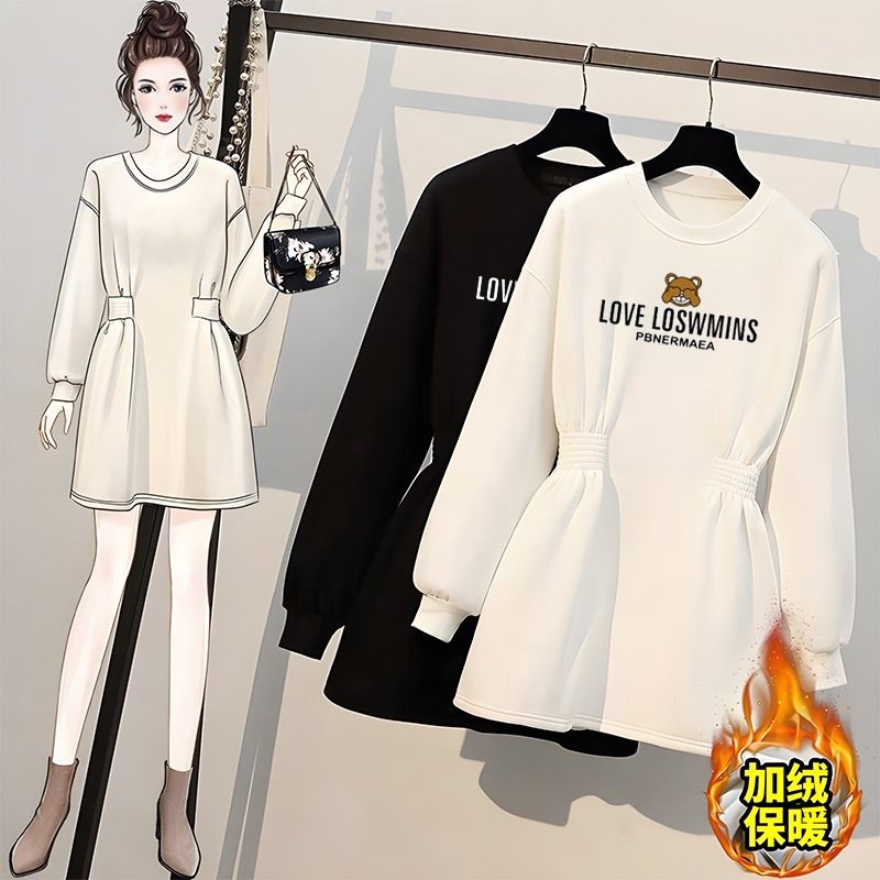 📚 中长款收腰卫衣裙子女秋冬季2026新款宽松加绒加厚设计感小众上衣