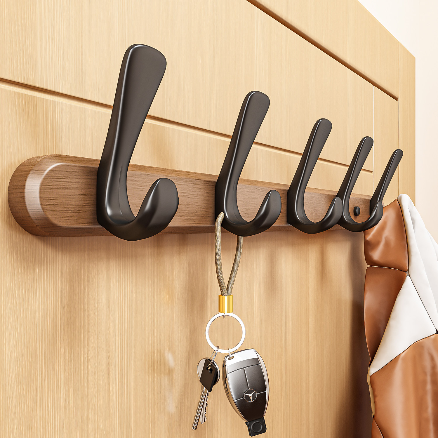 📚 实木挂衣钩进门玄关入户门创意衣服衣帽挂钩墙上壁挂免打孔挂衣架
