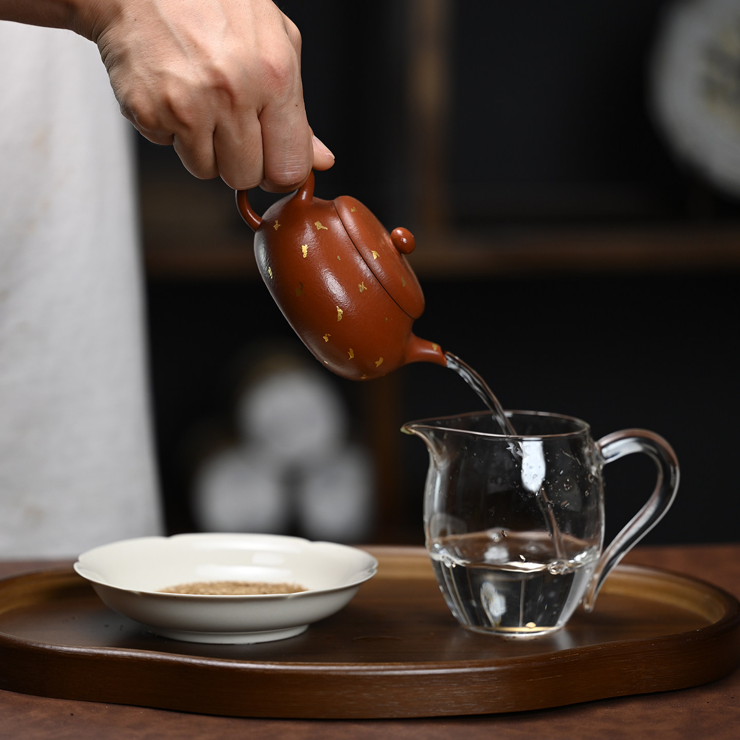 📚 宜兴紫砂壶实用自用功夫泡茶壶茶具原矿朱泥全手工洒金香玉170ML