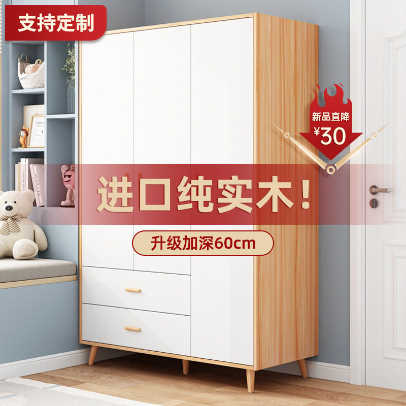📚 全实木衣柜家用卧室储物收纳柜对开门小户型儿童两门三门衣橱定制