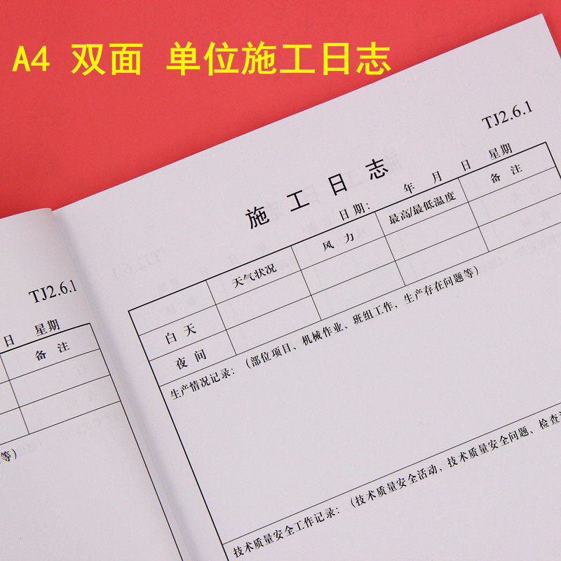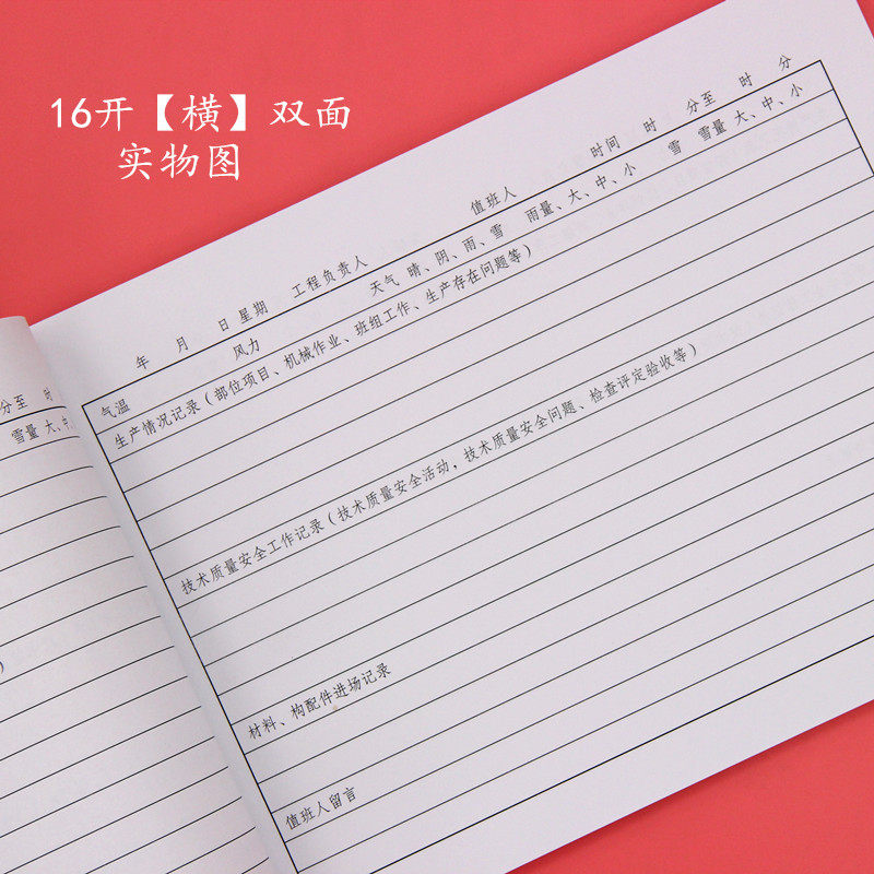 📚 5本装16K双面工程施工日记本通用加厚A4安全记录单面建筑行业监理日志企业单位工作50张进度本新版