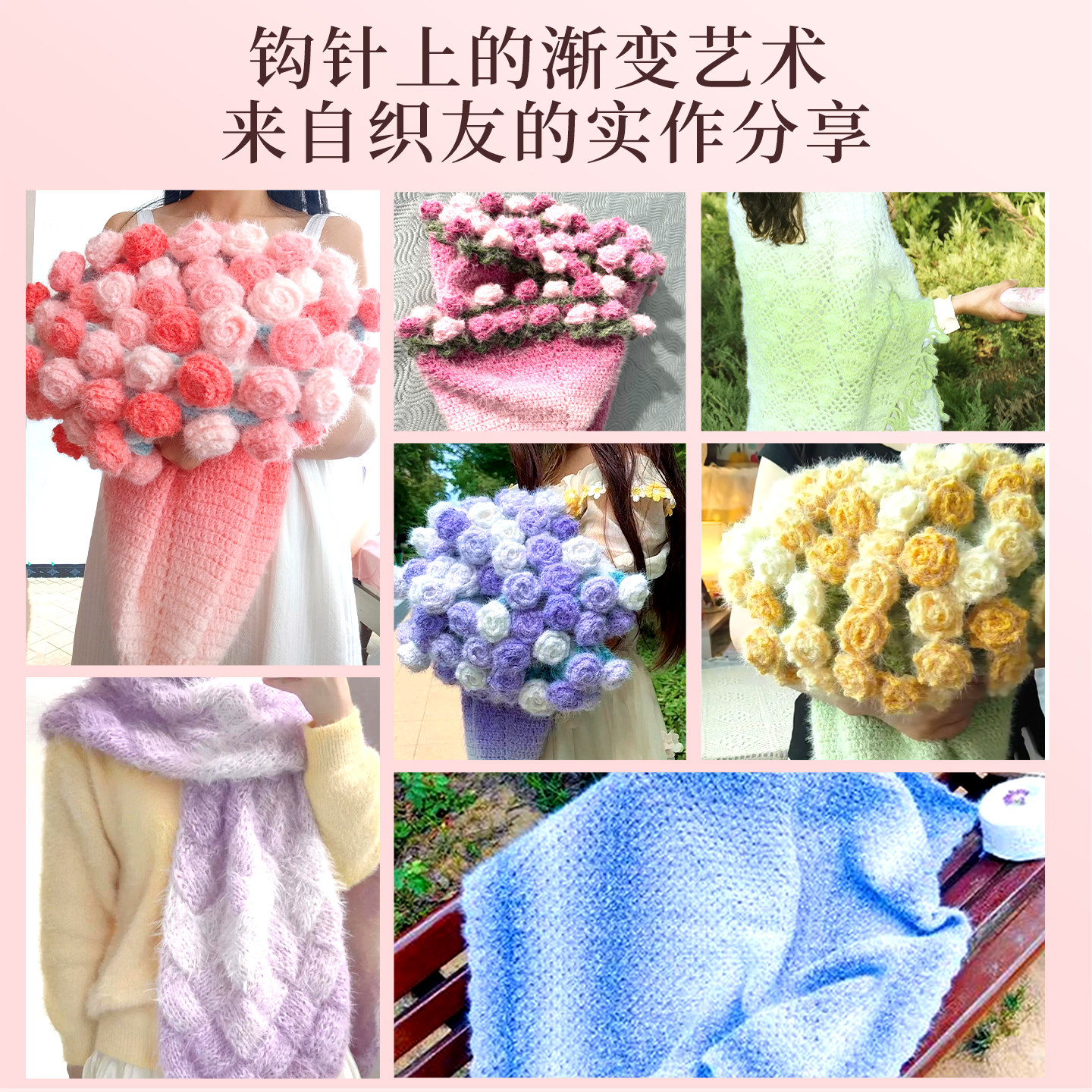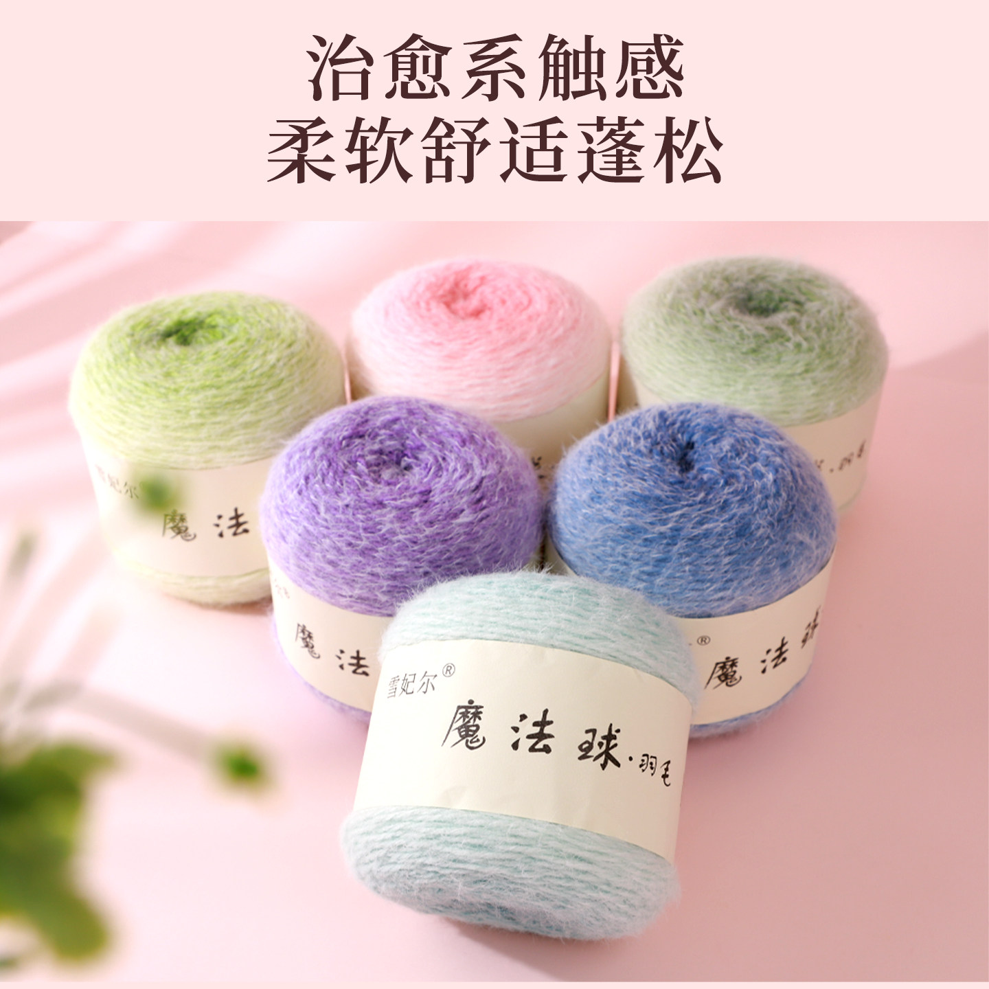 📚 雪妃尔魔法球羽毛长绒蛋糕线渐变色毛线手工编织diy钩织花束毯子