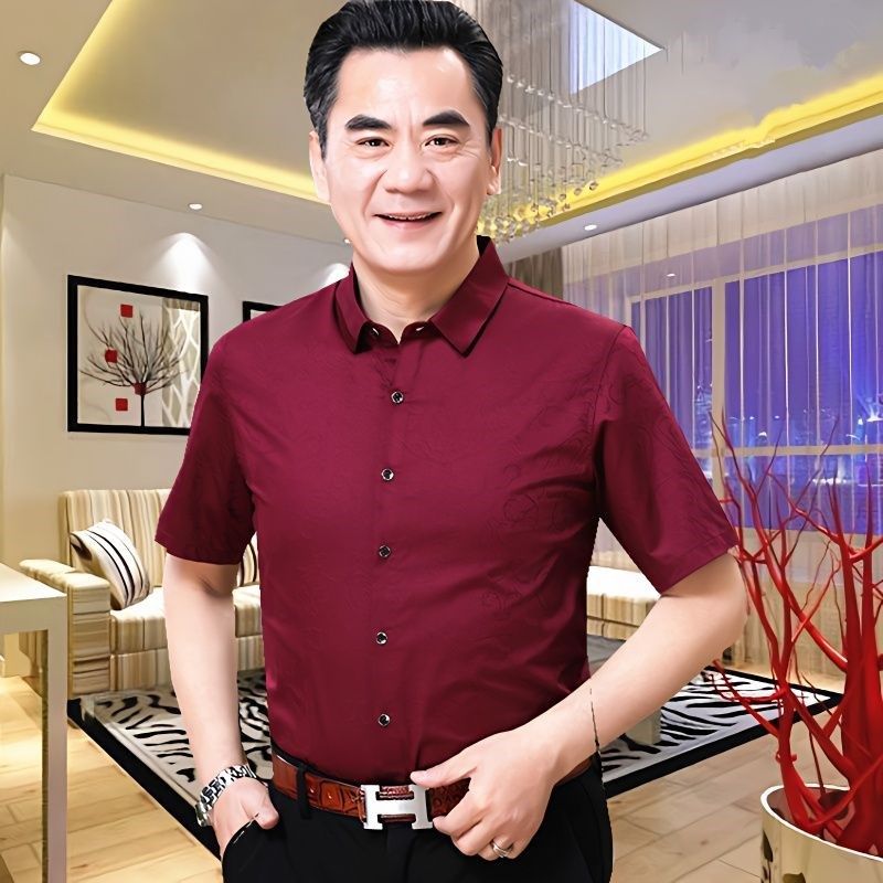 📚 本命年爸爸短袖装婚宴礼服中年新娘结婚宴会岳父衬衣父亲装婚庆男