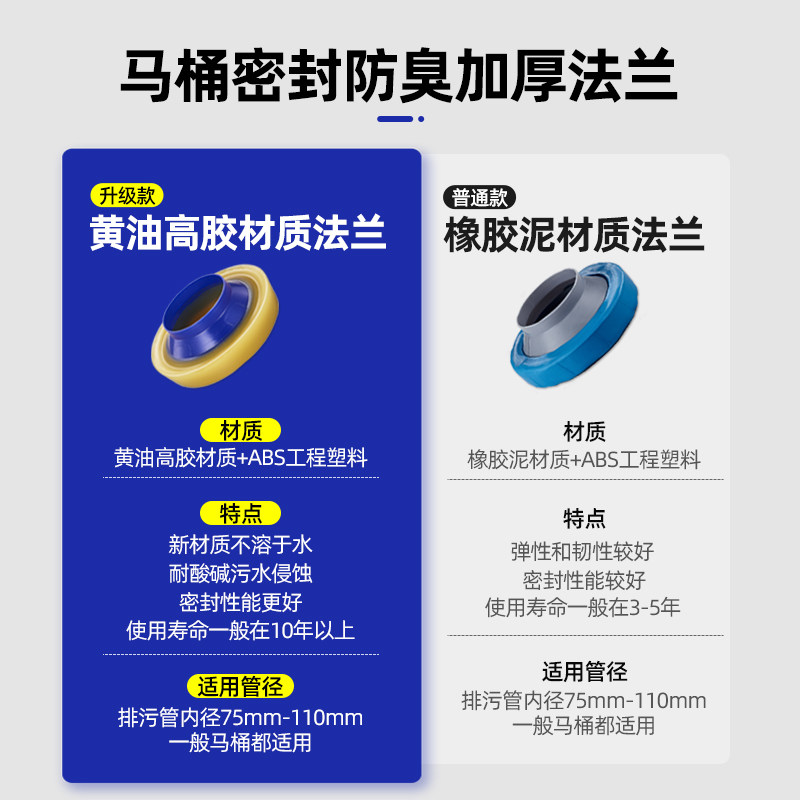 📚 潜水艇马桶法兰密封圈防臭防漏坐便器底部专用下水口黄油高胶通用