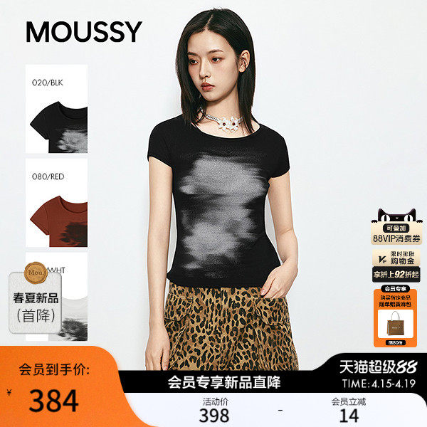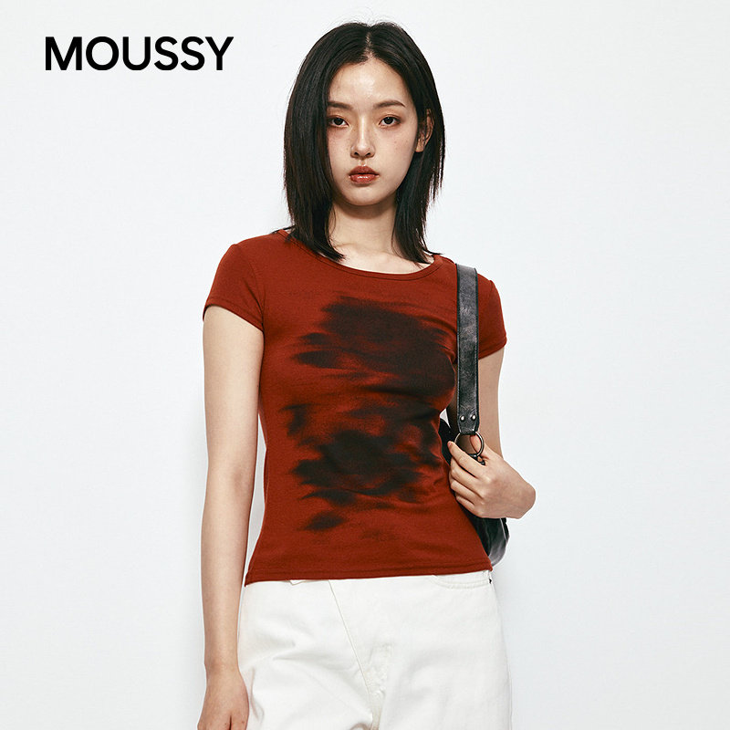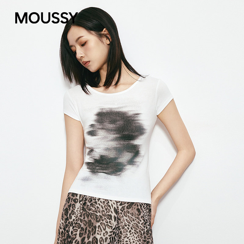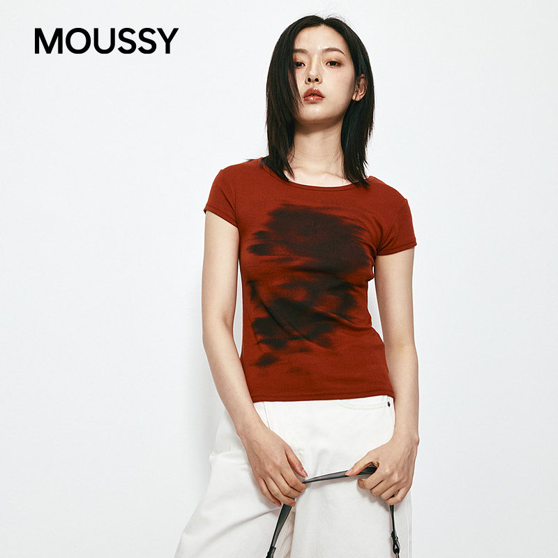📚 MOUSSY 2026夏季新品清冷风晕染印花修身短袖T恤女028JSA90-1041