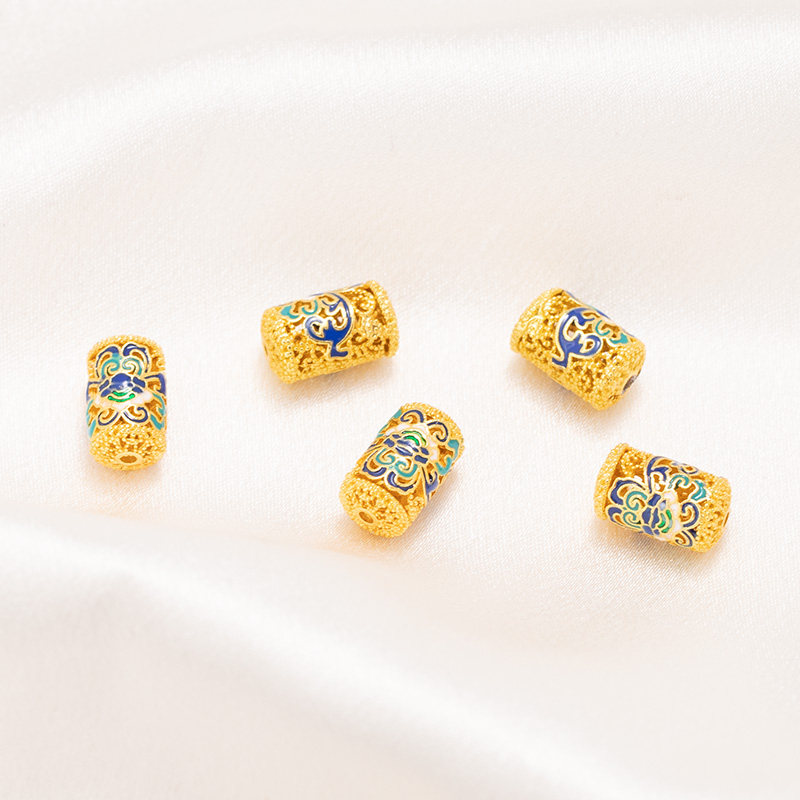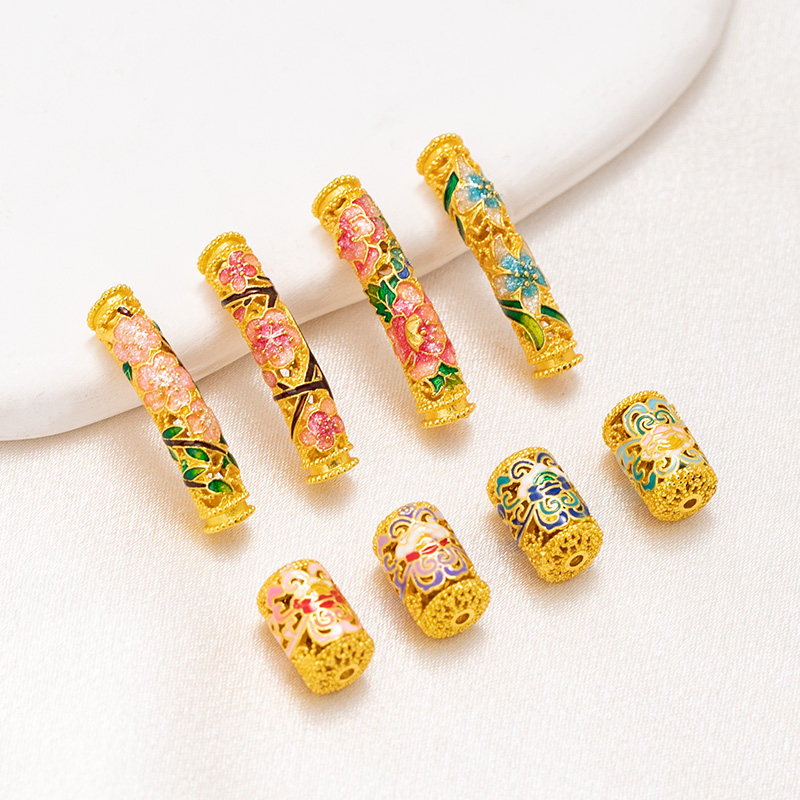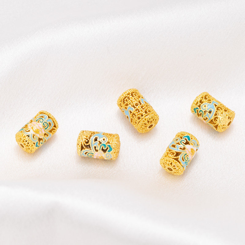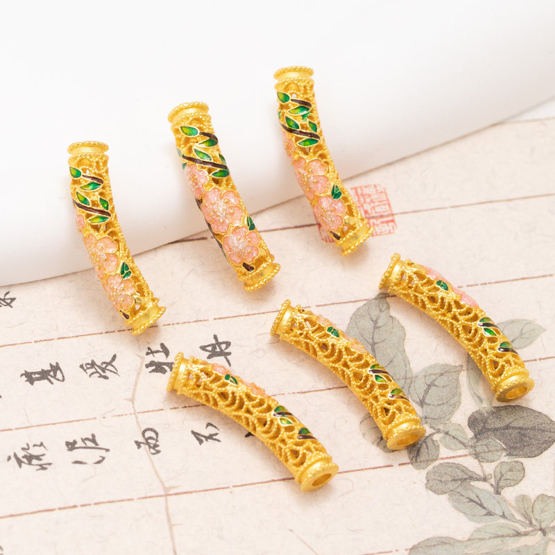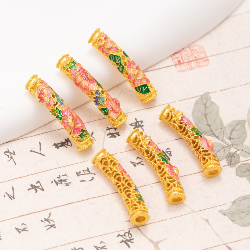 📚 铜镀18K保色滴油珐琅彩镂空十二月花神弯管串珠手链项链饰品配件