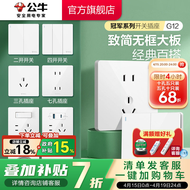 📚 公牛官方旗舰店开关插座空调16A插座五孔10A面板暗装多孔G12白灰