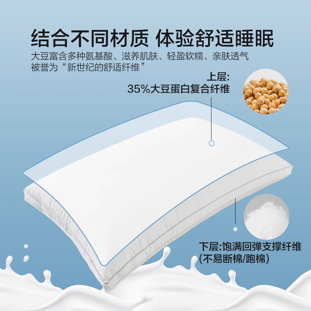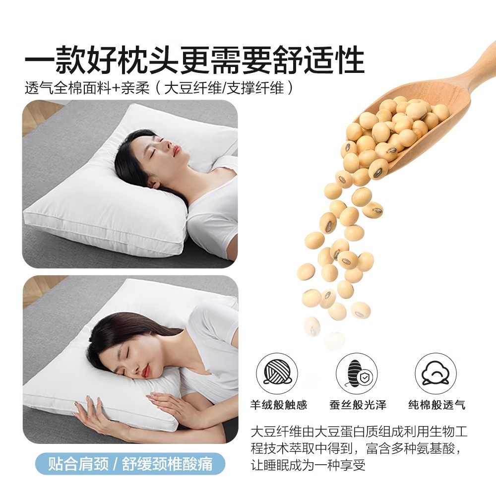 📚 博洋枕芯一对装大豆纤维家用枕头可水洗成人全棉双人结婚护颈整头