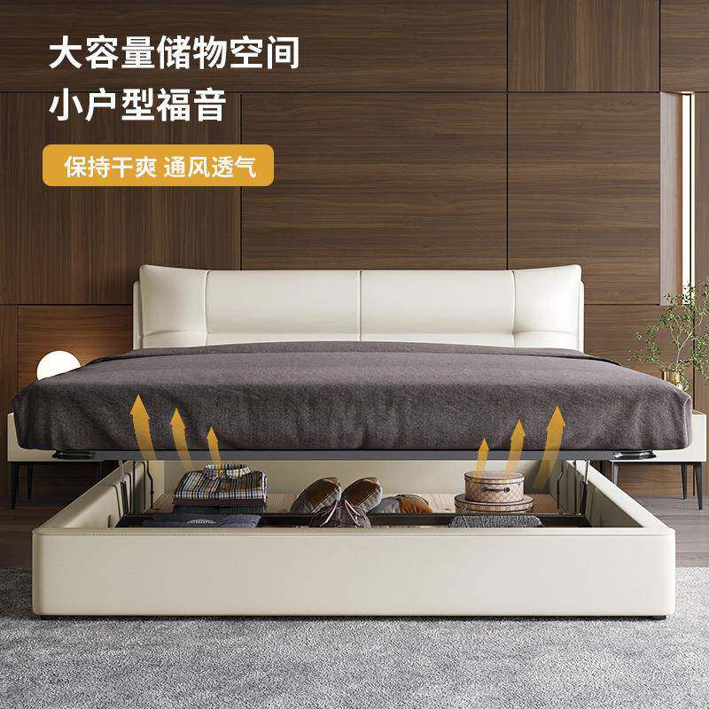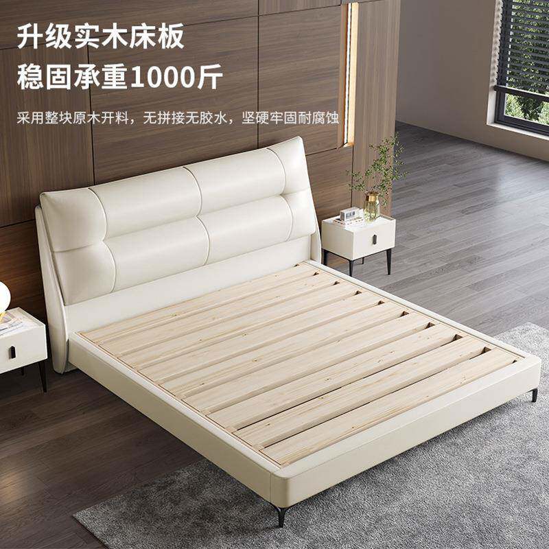📚 极简真皮床2米x2米2主卧室大床意式轻奢高端双人软包婚床2025新款