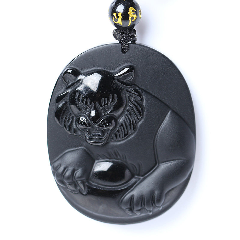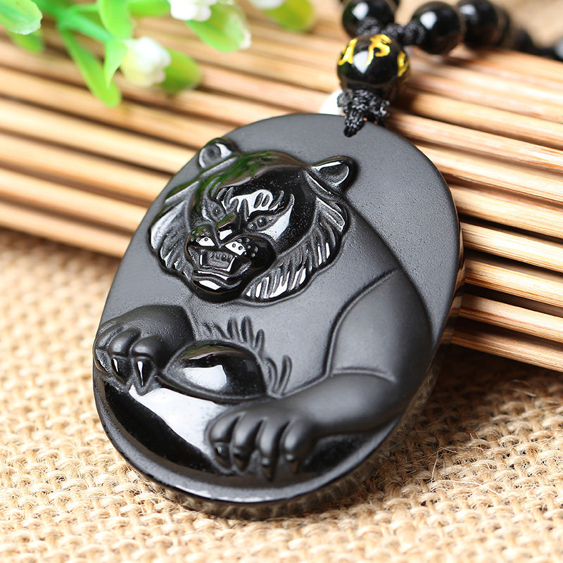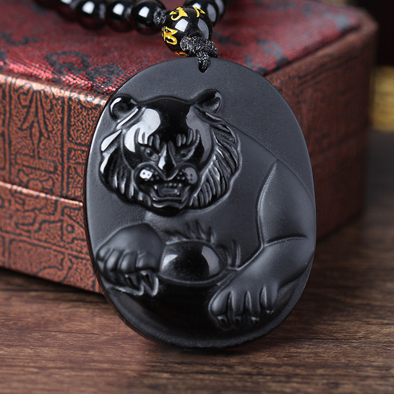 📚 生肖鸣虎赐瑞黑曜石生肖吊坠福虎拱福禄虎形饰品属虎虎型男女款