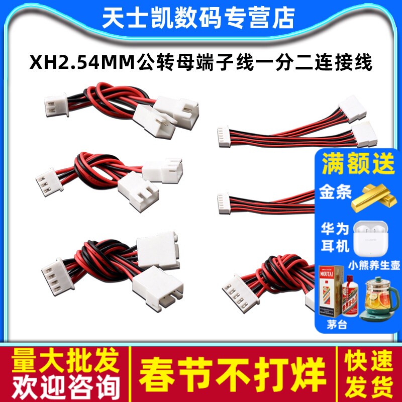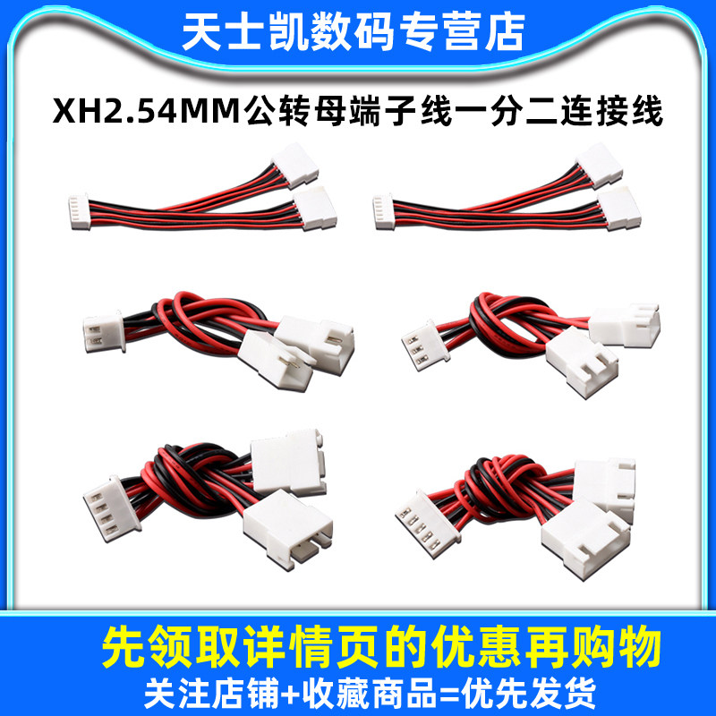 📚 XH2.54MM公转母端子线一分二一拖二插头2p3p4p5p6p延长公母连接线