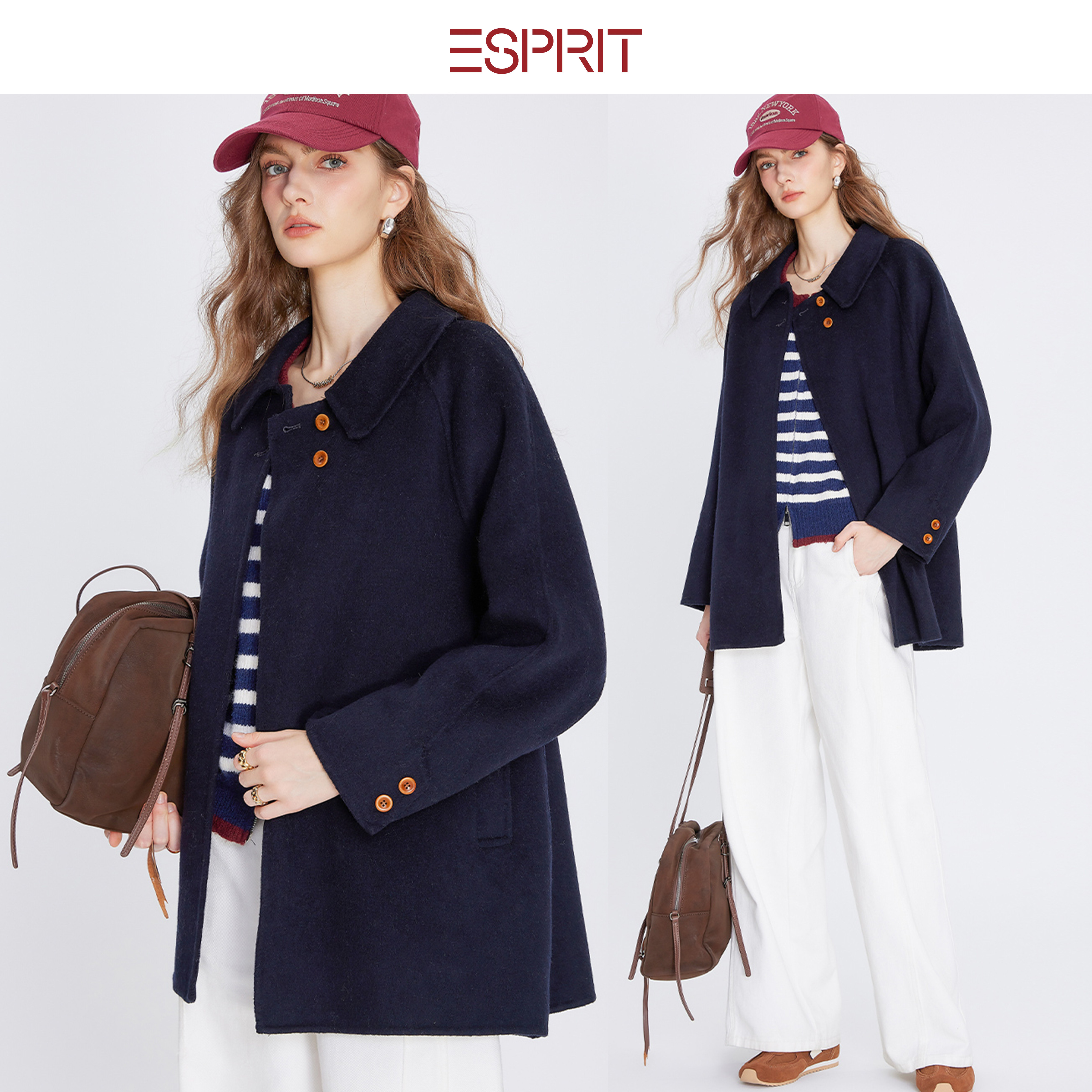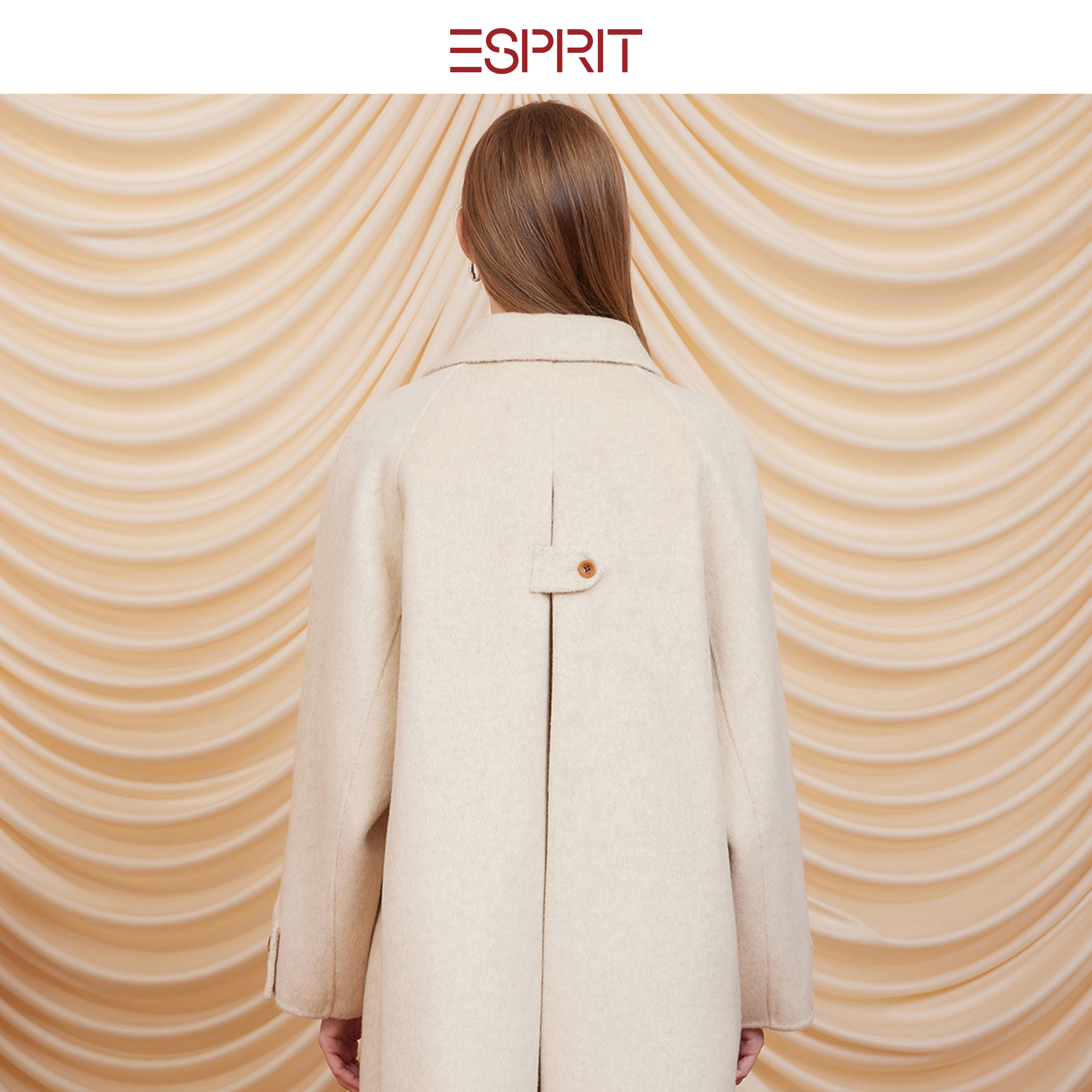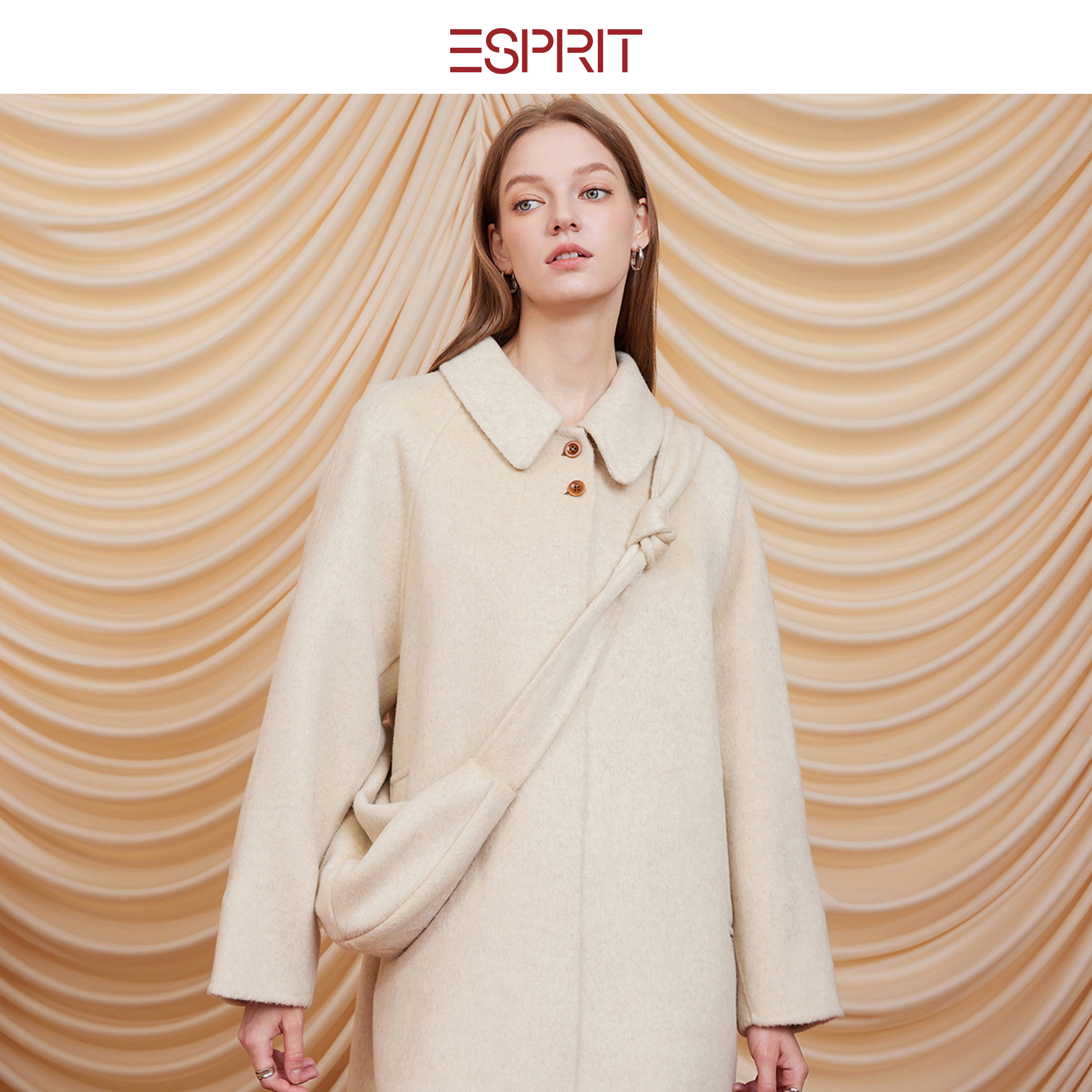 📚 ESPRIT/埃斯普利特老钱风羊毛呢子大衣女长款单排扣外套高级感
