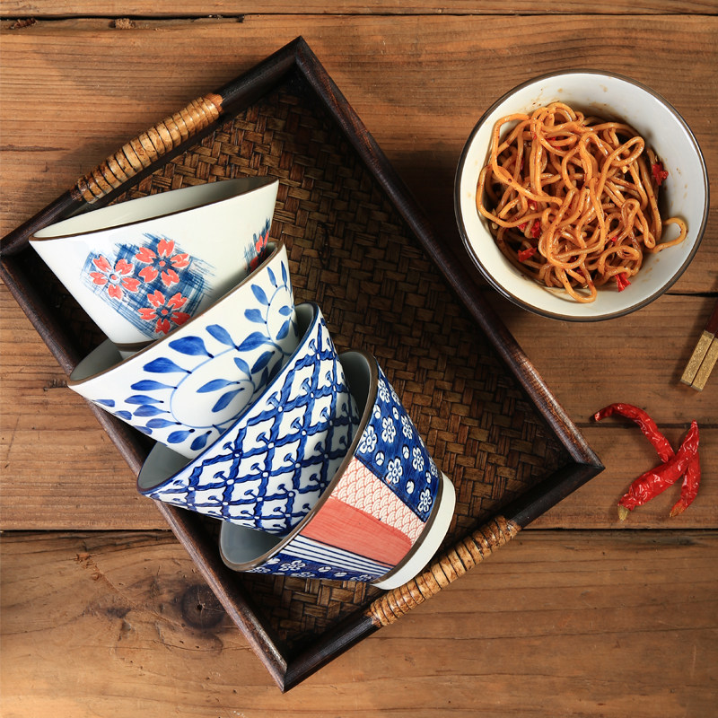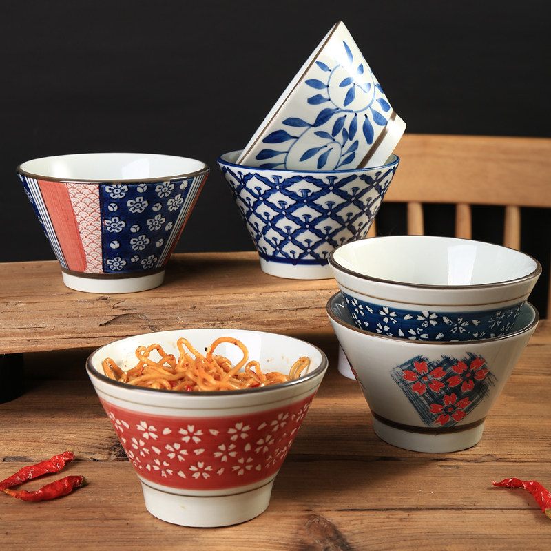 📚 日式斗笠碗家用陶瓷2025新款高脚面碗吃饭的碗个人5英寸微波炉碗