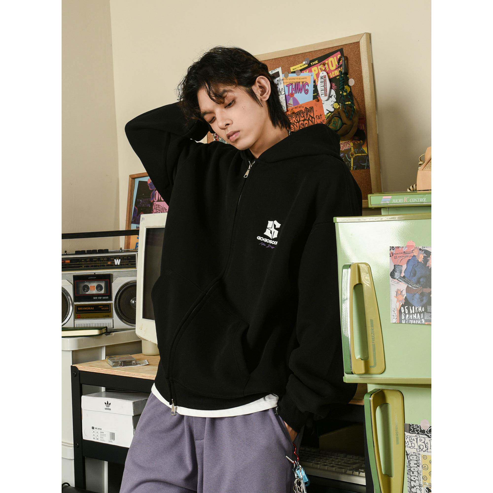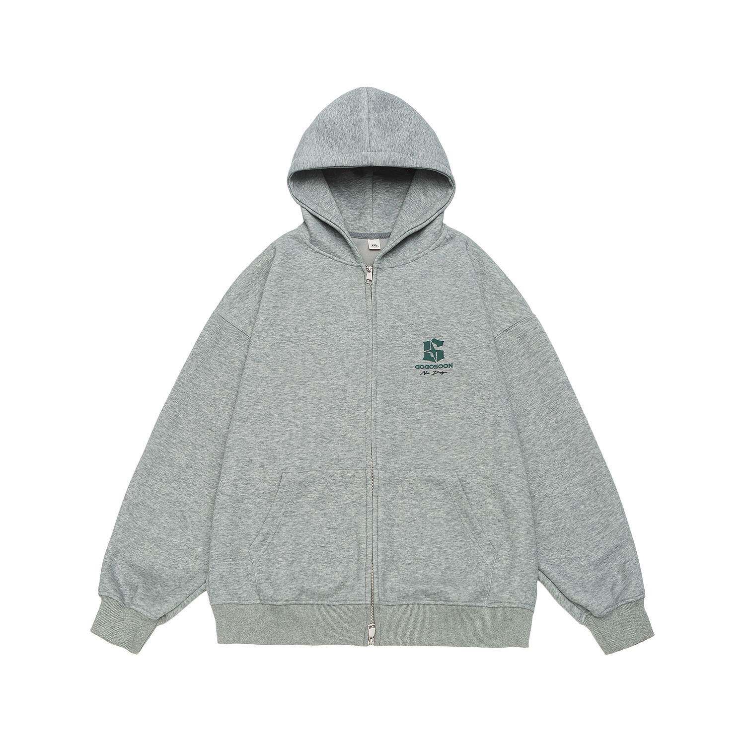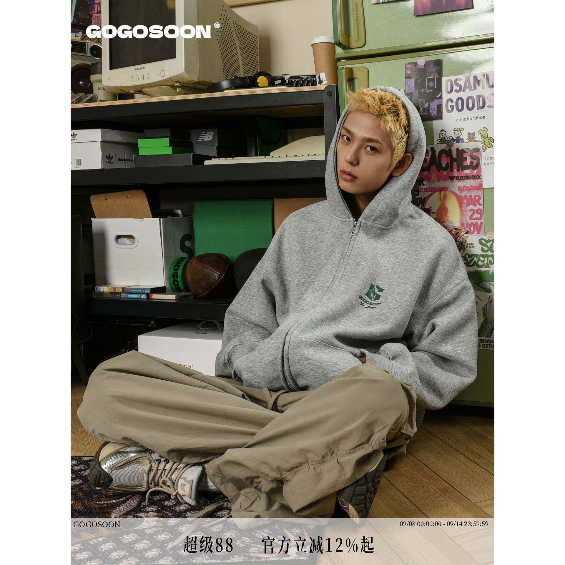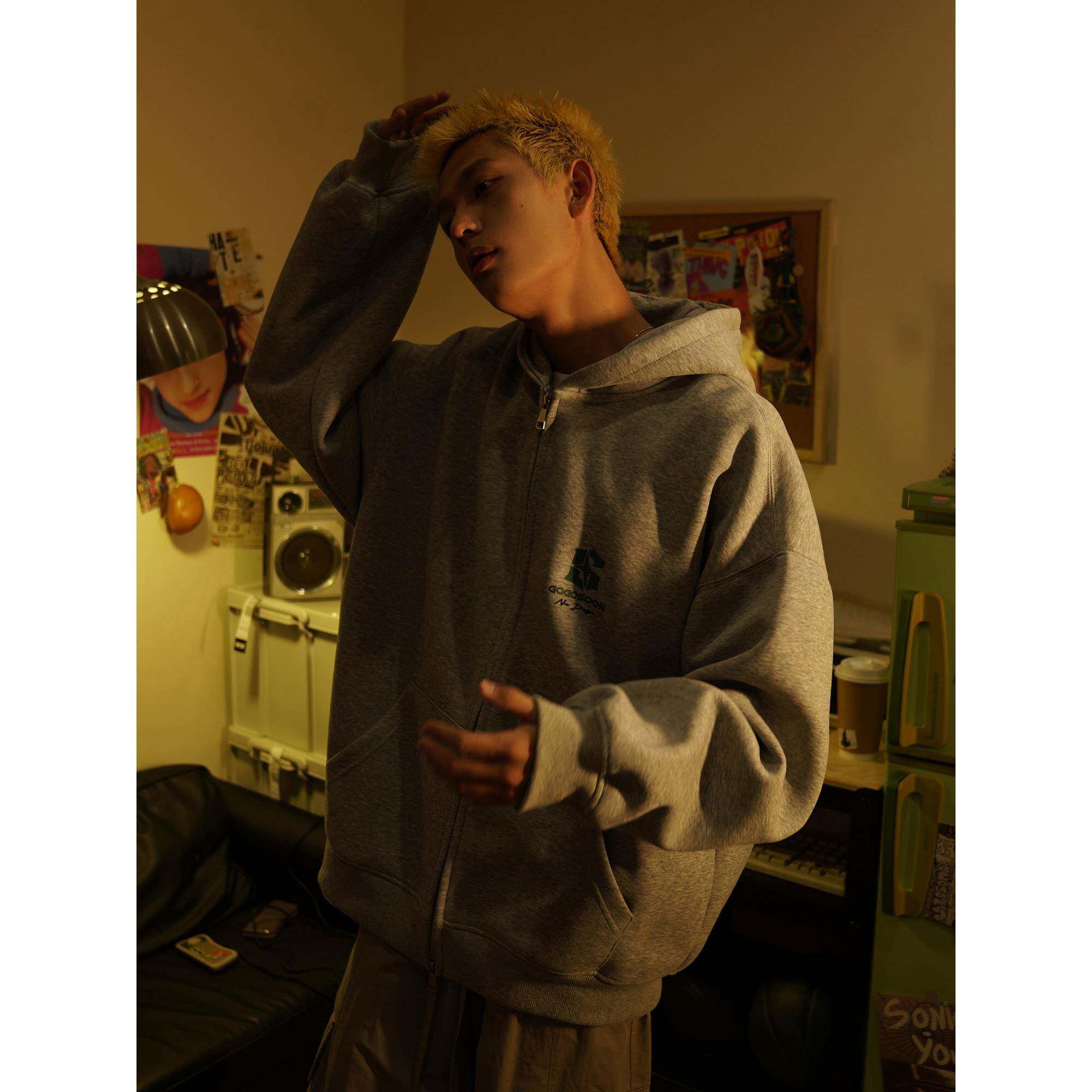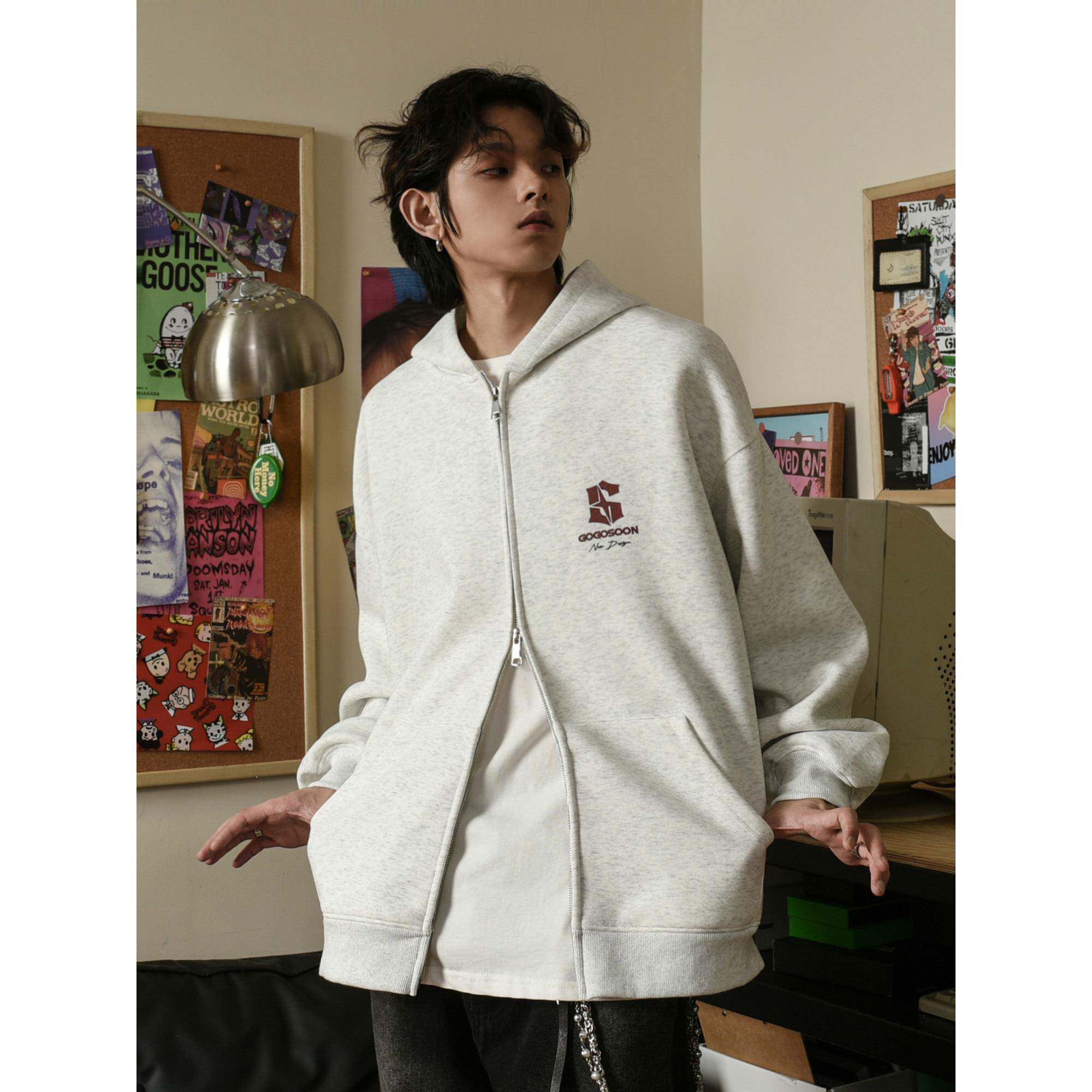 📚 田嘉瑞同款GOGOSOON卫衣男400g新款春秋外套灰色拉链开衫连帽美式