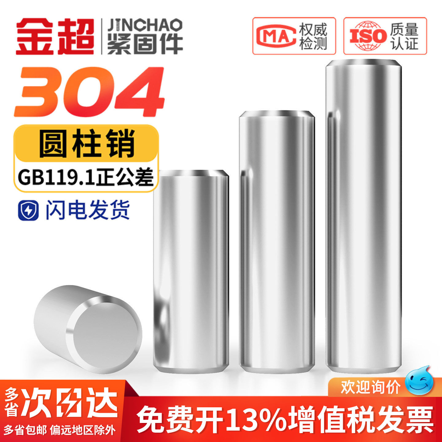📚 金超304不锈钢m6精度正公差圆柱销GB119.1精密实心定位销固定销子