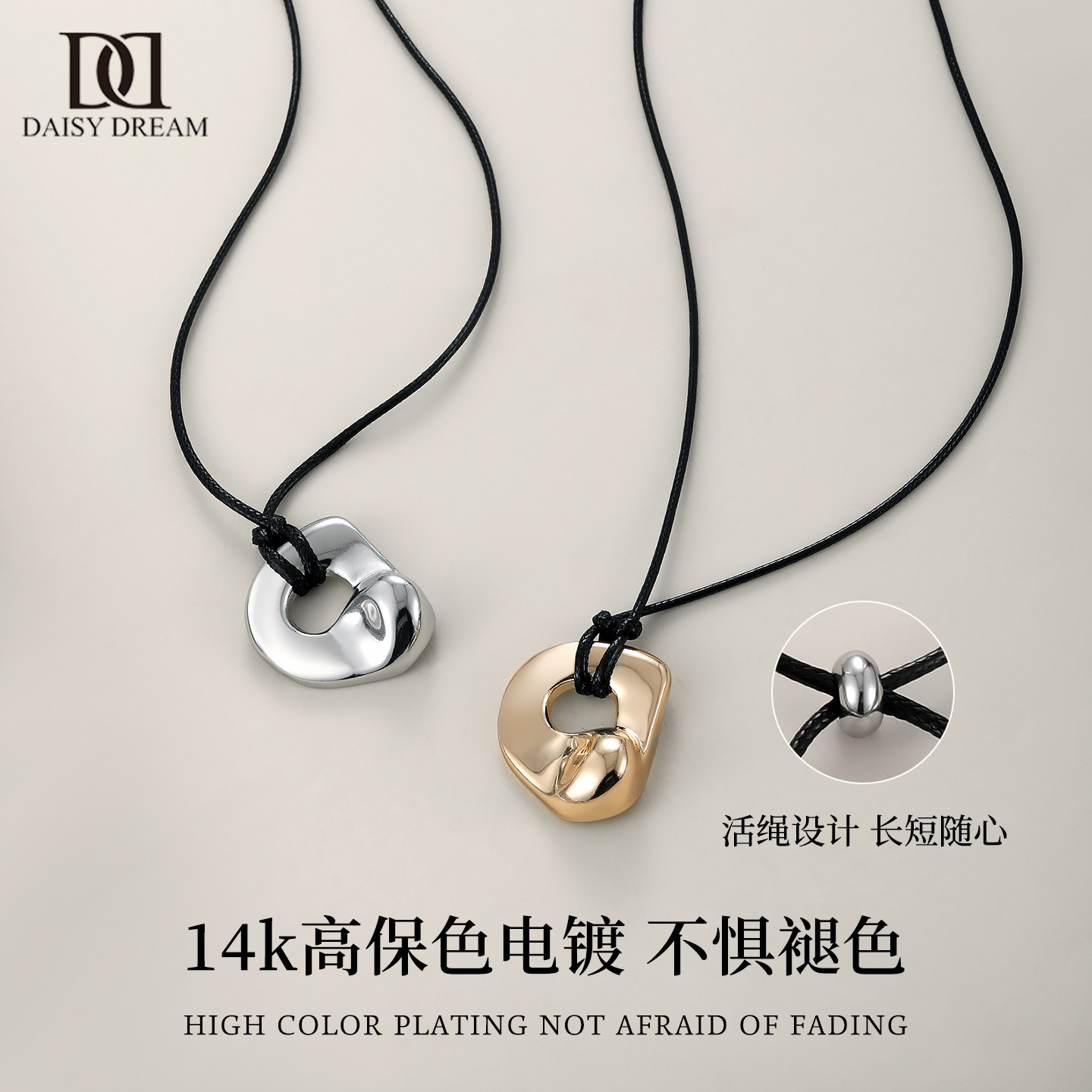 📚 长款抽象镂空吊坠项链女复古小众时尚轻奢皮绳毛衣链2025新款配饰