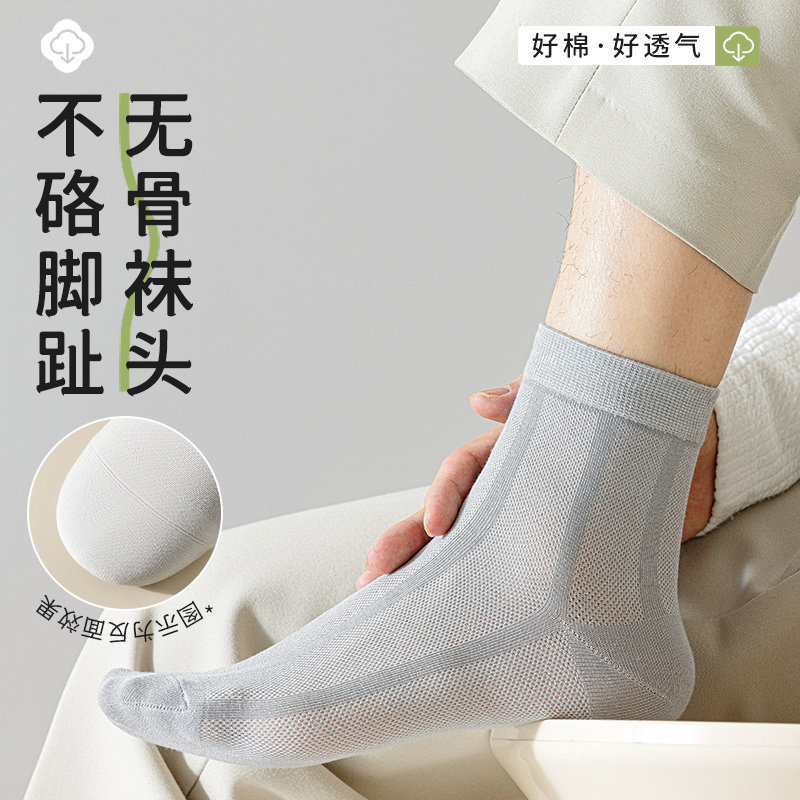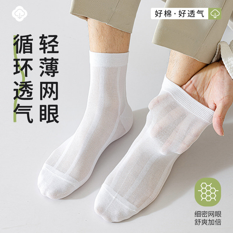 📚 诸暨袜子男士中筒袜夏季薄款网眼透气长筒袜纯棉防臭夏天男款长袜