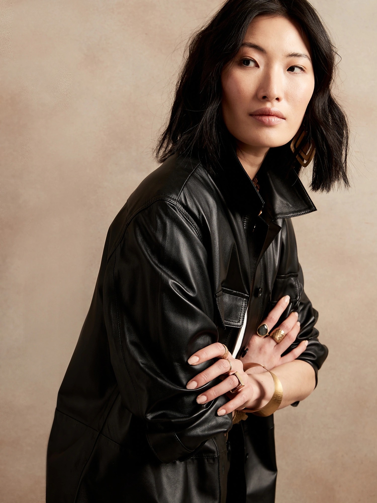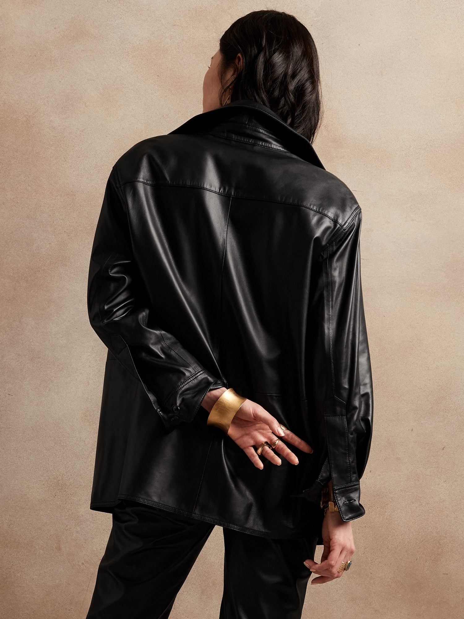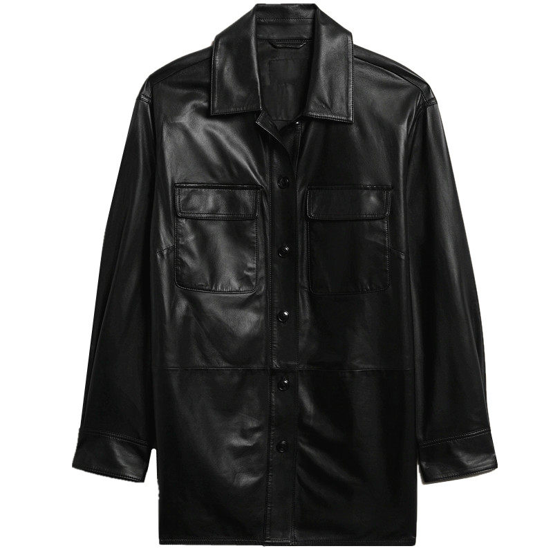 📚 外贸新款意大利进口绵羊皮oversize男友风廓形衬衫女真皮皮衣