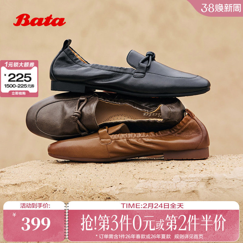 📚 Bata果焦乐福2025秋商场新款英伦羊皮通勤百搭软底一脚蹬AVL56CA5