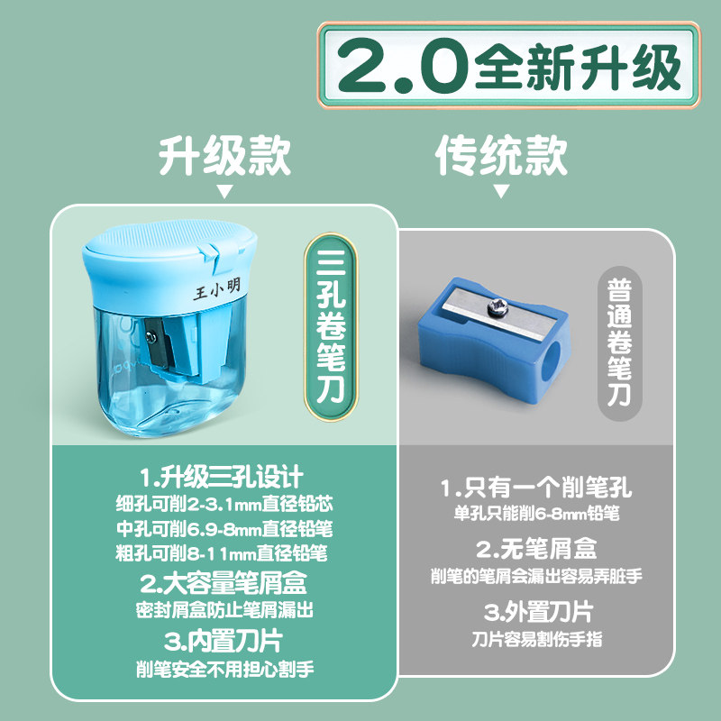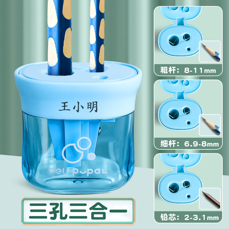 📚 得力刻字三孔卷笔刀削笔刀小学生专用大口径削铅笔刀削笔器幼儿园儿童小型便携转笔刀铅笔刀手动铅笔刨旋笔刀