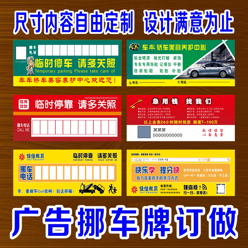 📚 纸临时停靠停车牌制作汽车停车卡插车卡定制贷款汽修租车广告挪车