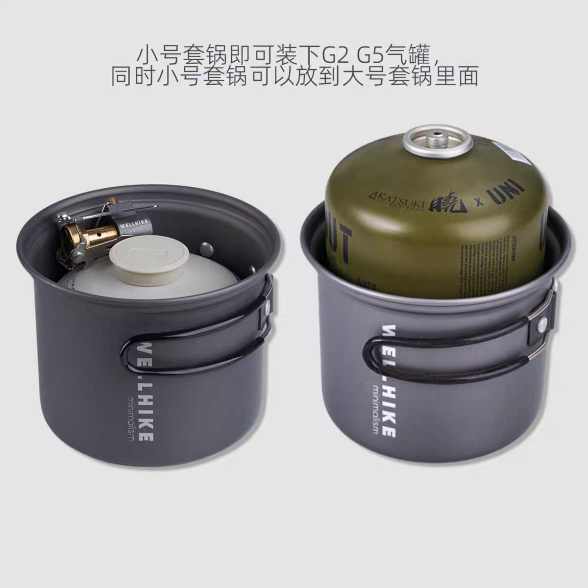 📚 WELLHIKE户外锅具套锅轻量化单人折叠便携野外餐具 露营炊具2件套