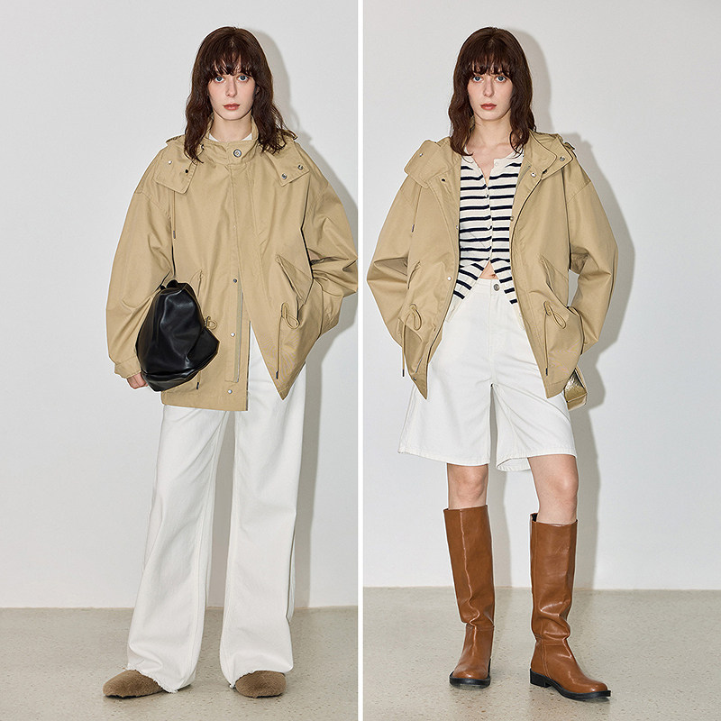 📚 【商场同款】LILY秋新款经典休闲一手长廓形双层高领连帽风衣