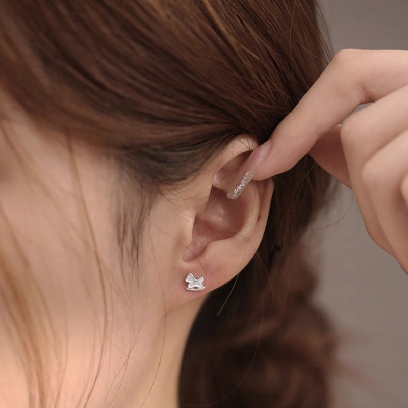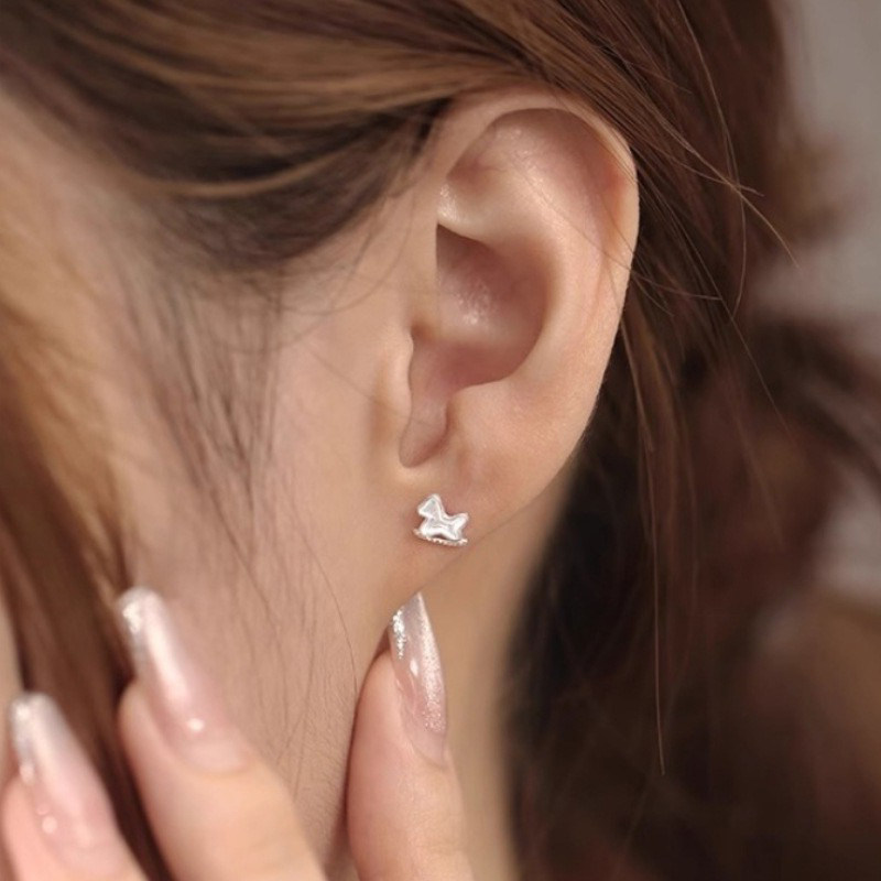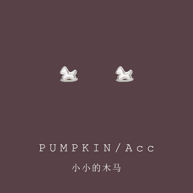 📚 童趣可爱迷你木马耳钉小巧精致简约气质日常卡通耳饰耳夹无耳洞女