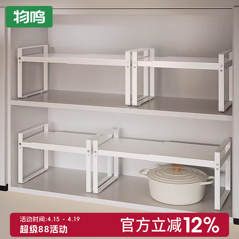 📚 可伸缩厨房置物架橱柜柜内分层架柜子隔板多层锅架调料碗碟收纳架