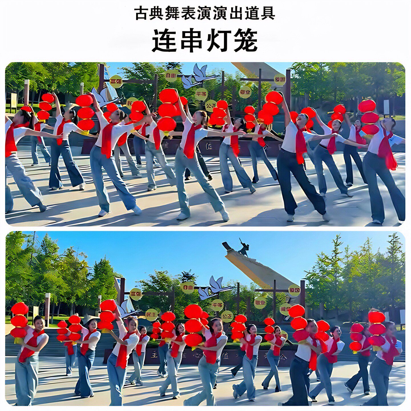 📚 张灯结彩灯笼舞蹈道具带棒彩绸渐变色彩带折叠灯笼春节跳舞演出