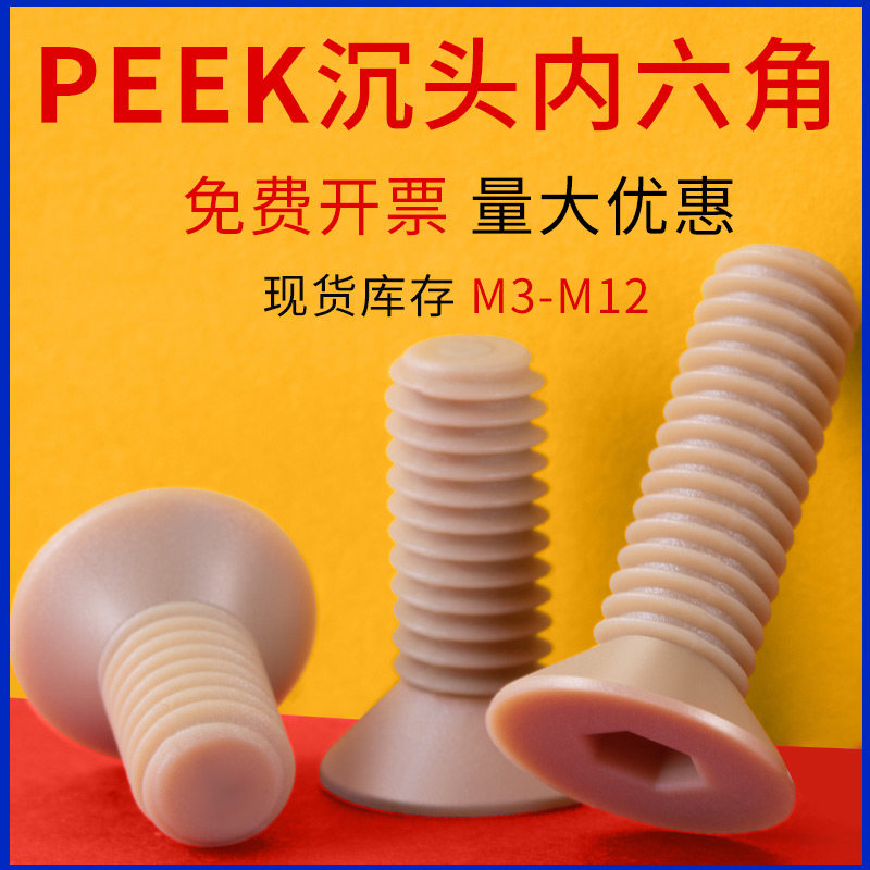 📚 PEEK树脂沉头内六角机螺钉耐高温绝缘树脂平头螺丝M3M4M5M6M8-M12