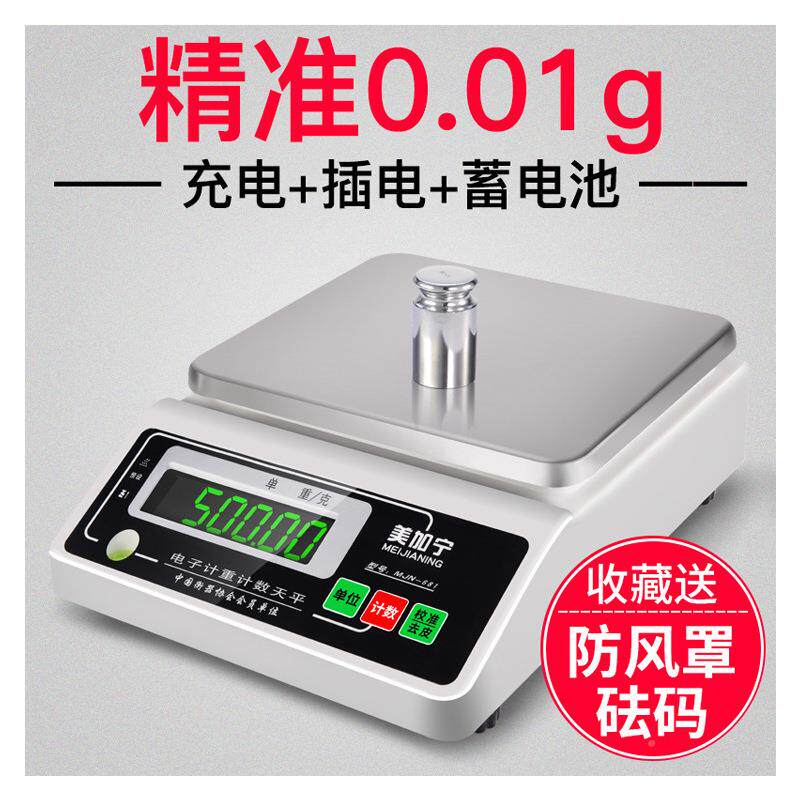 📚 美加宁子电称高精度天平秤0.07421称g0.001精准克重台验秤实室珠