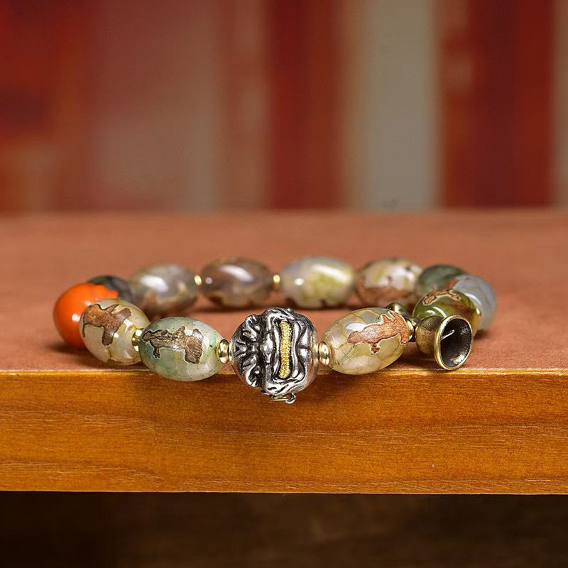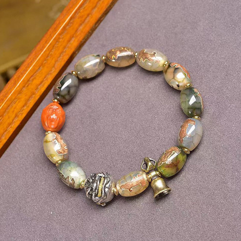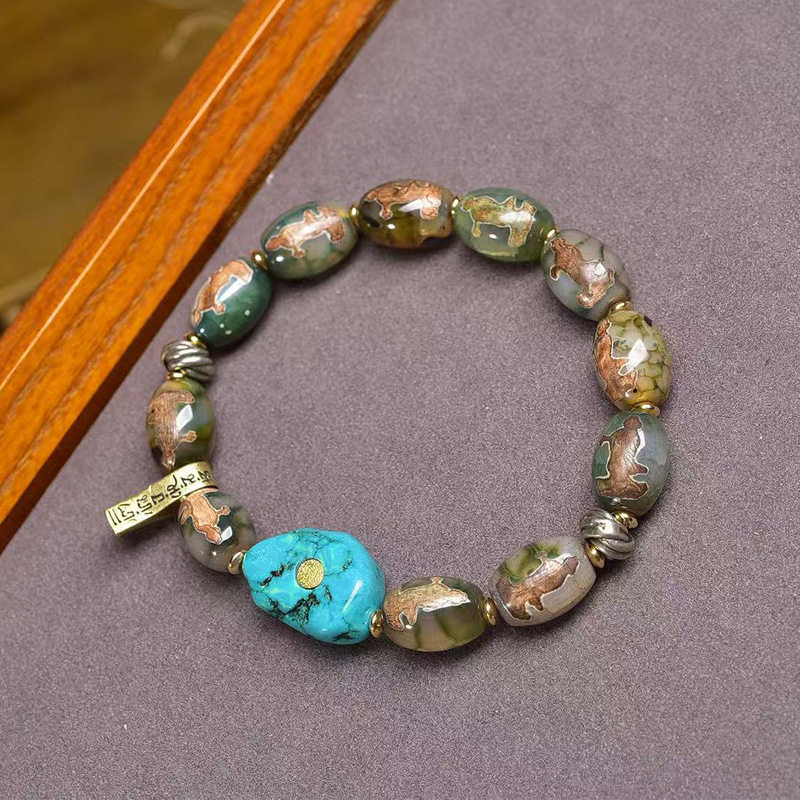 📚 藏区天然观音天珠文玩手串单圈南红玛瑙松石铜卡子配饰佛珠手链