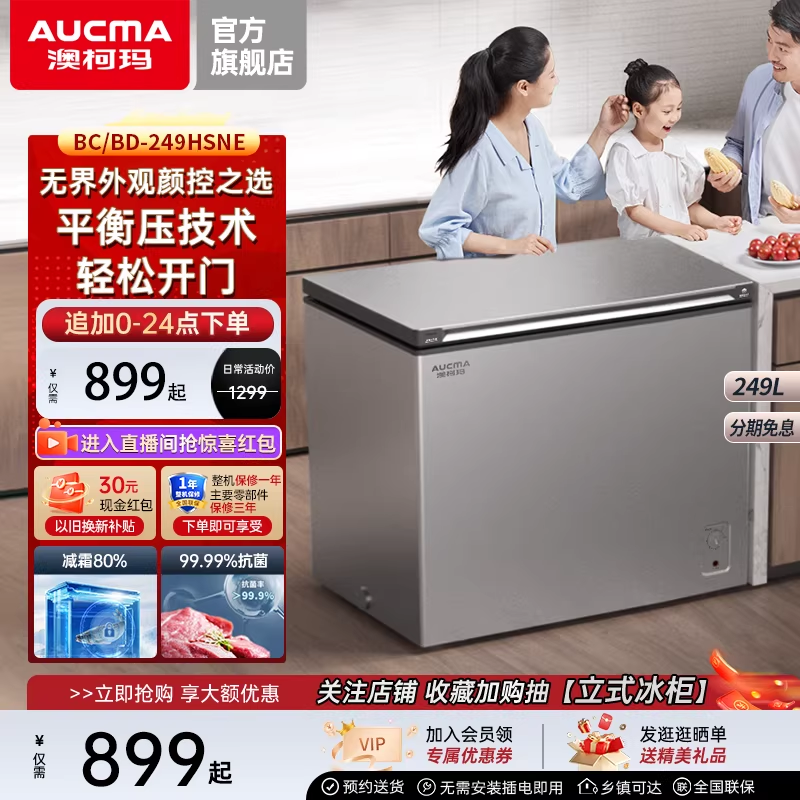 📚 澳柯玛BC/BD-249HSNE家用卧式冰柜减霜1级-36℃深冷官方旗舰店