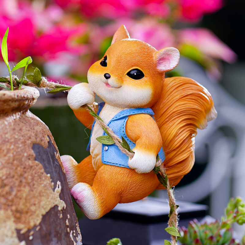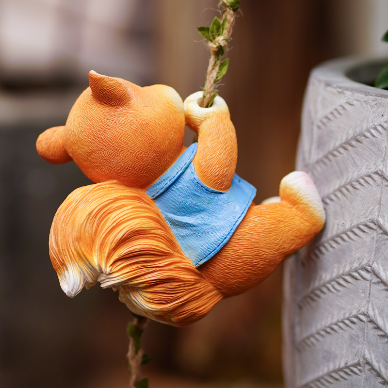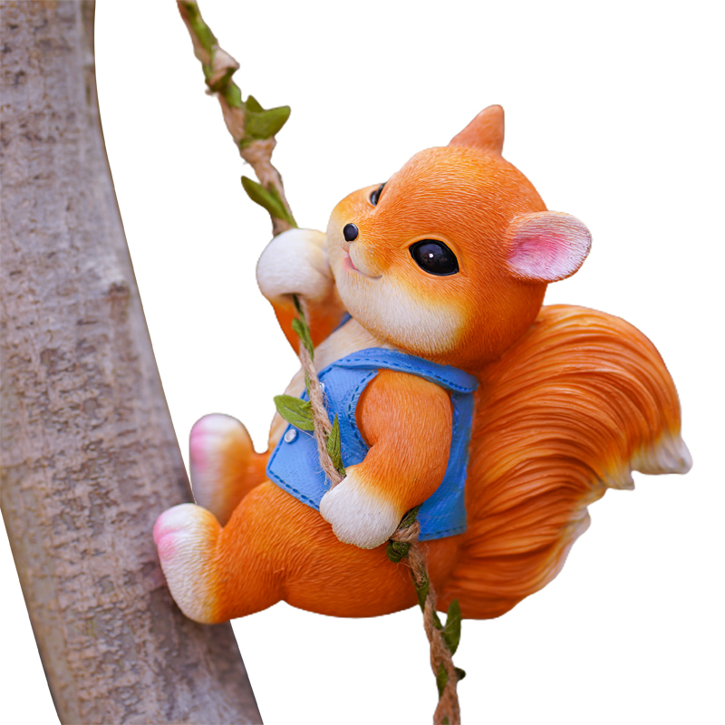 📚 户外花园盆挂可爱松鼠攀爬树上管道阳台庭院幼儿园装饰壁挂件摆件
