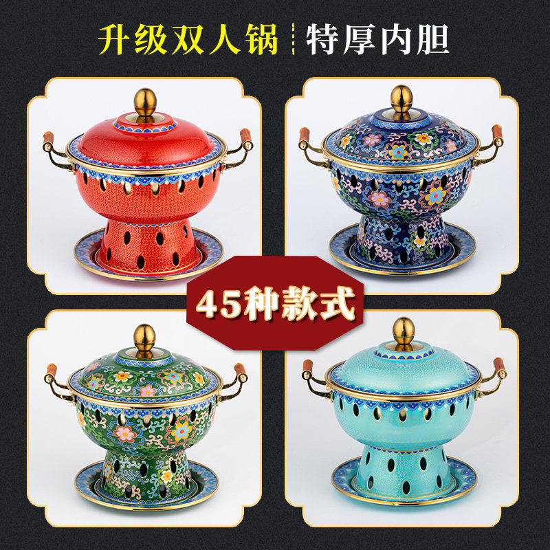 📚 景泰蓝铜火锅珐琅单人小火锅一人一锅酒精炉纯铜紫铜加厚家用铜锅