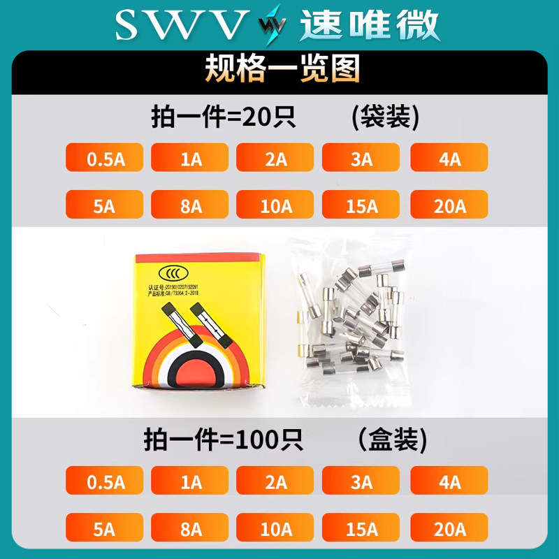 📚 保险丝5*20mm玻璃保险管熔断器6x30 250V 0.5A 1A 2A 3A 4A 5A10A