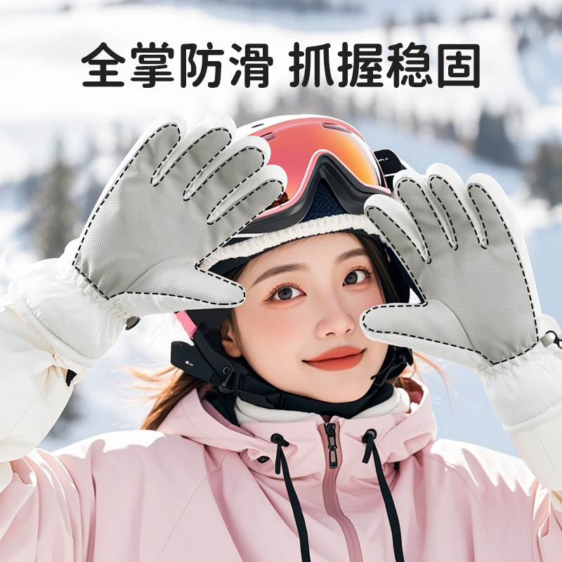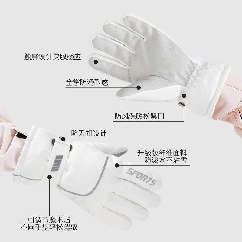 📚 滑雪手套女冬季加绒加厚防风防寒保暖可触屏登雪山防水五指棉手套